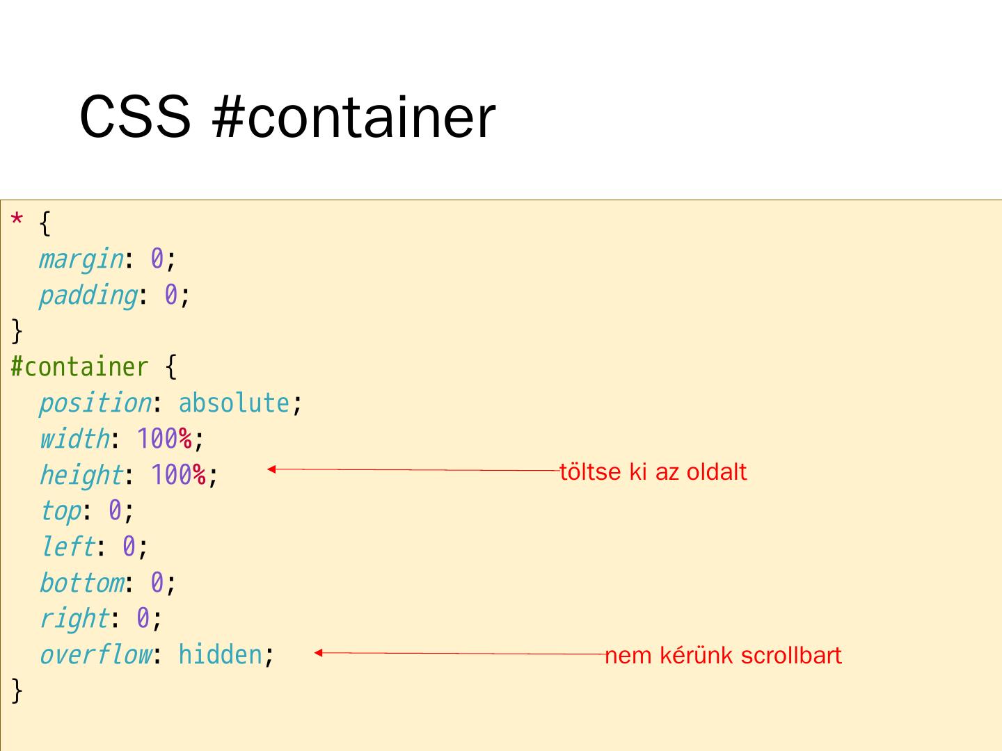 vászon, erre rajzol a WebGL. ezt a HTML szakaszt szeretnénk a vászon főlé rajzolni. tartalmát a kódból módosítva. könnyen jeleníthetünk meg szöveget. CSS # ...