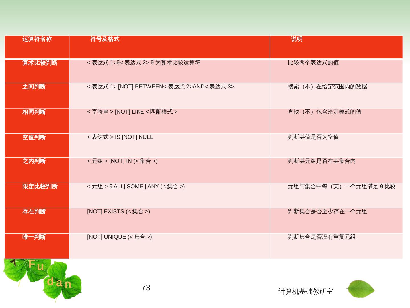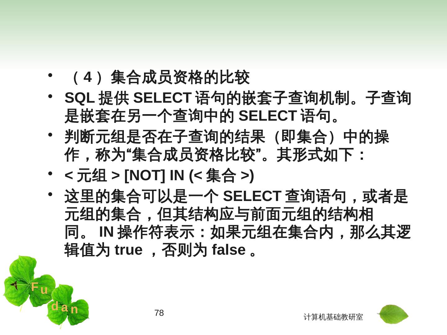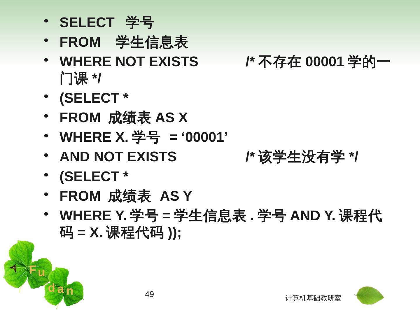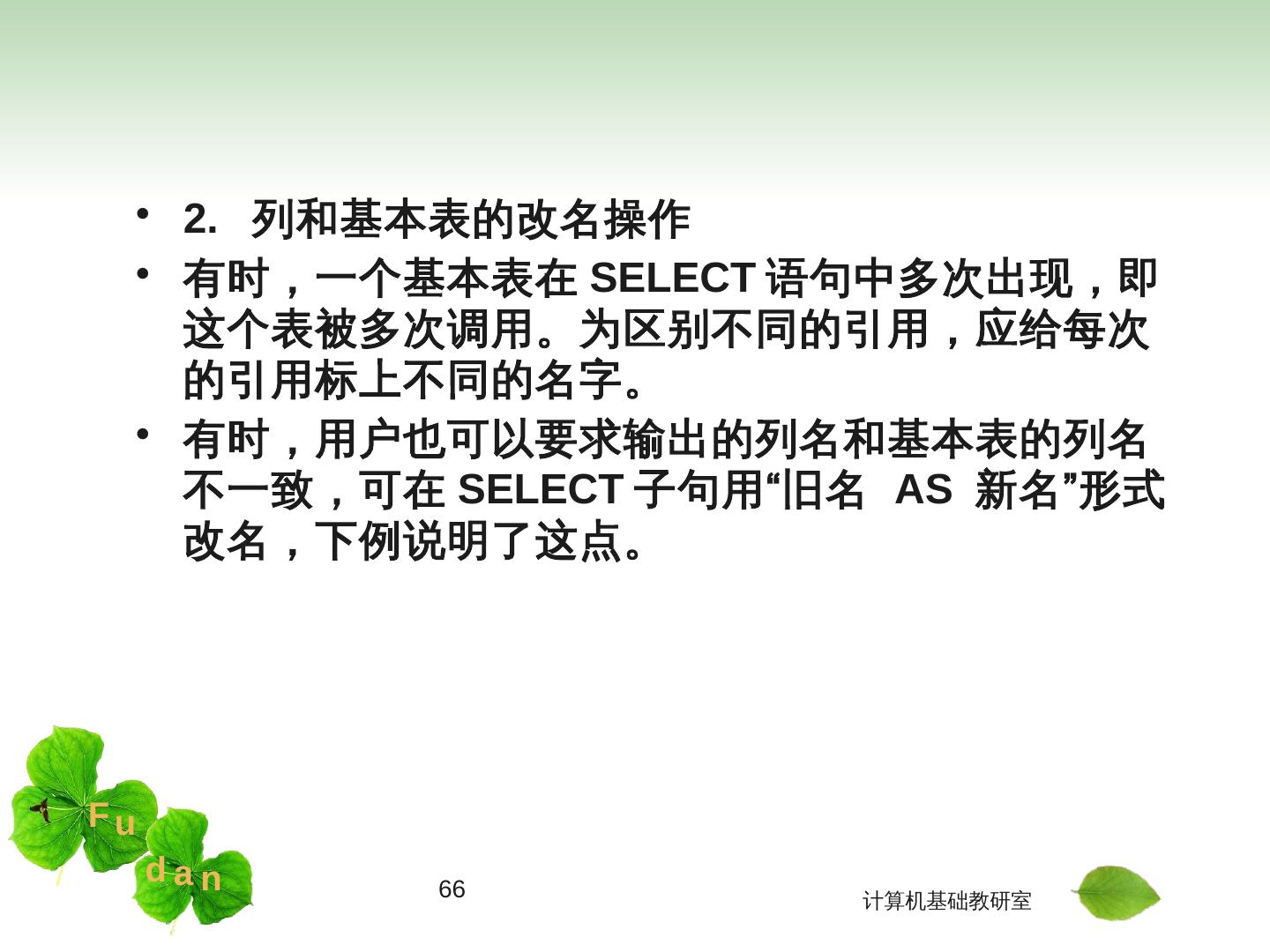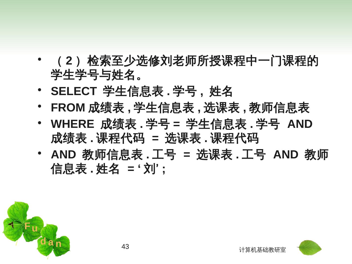 SQL具有如下特点:; (1)SQL具有十分灵活和强大的查询功能,其SELECT语句能完成相当复杂的查询操作,包括各种关系代数操作、统计、排序等操作;; (2)SQL不是 ...