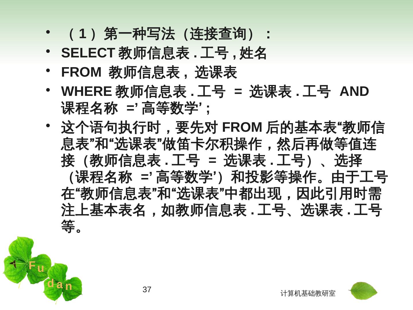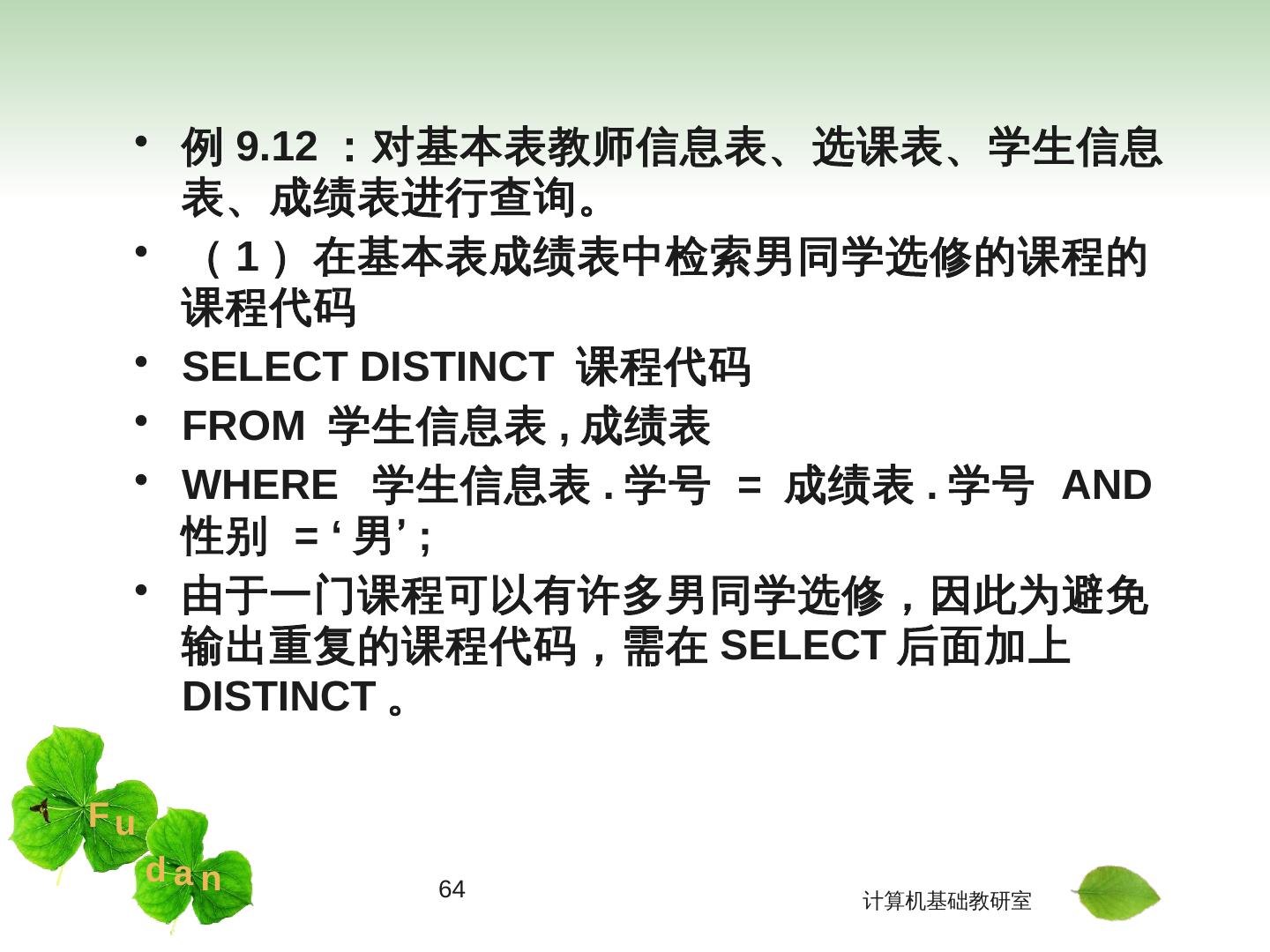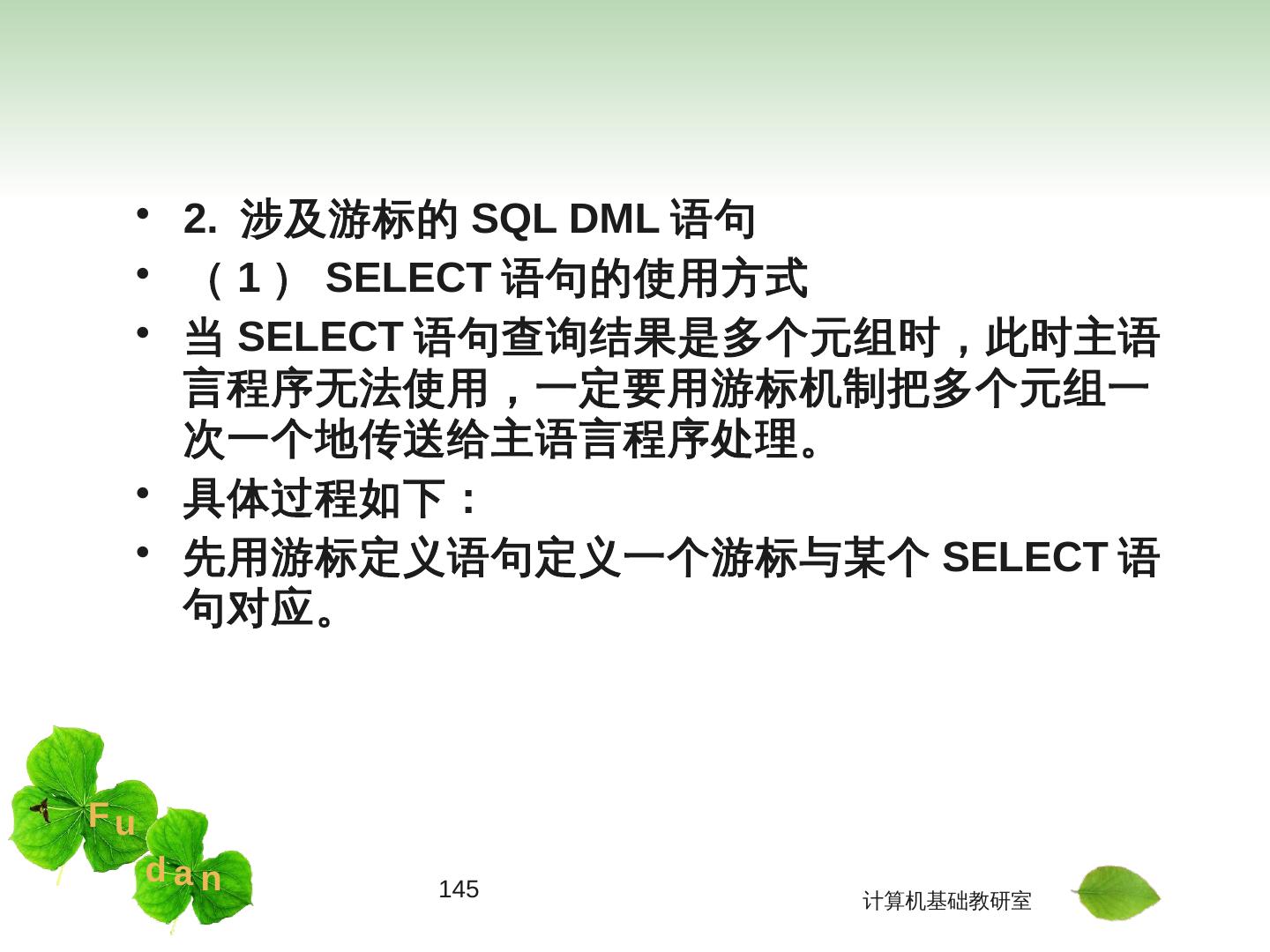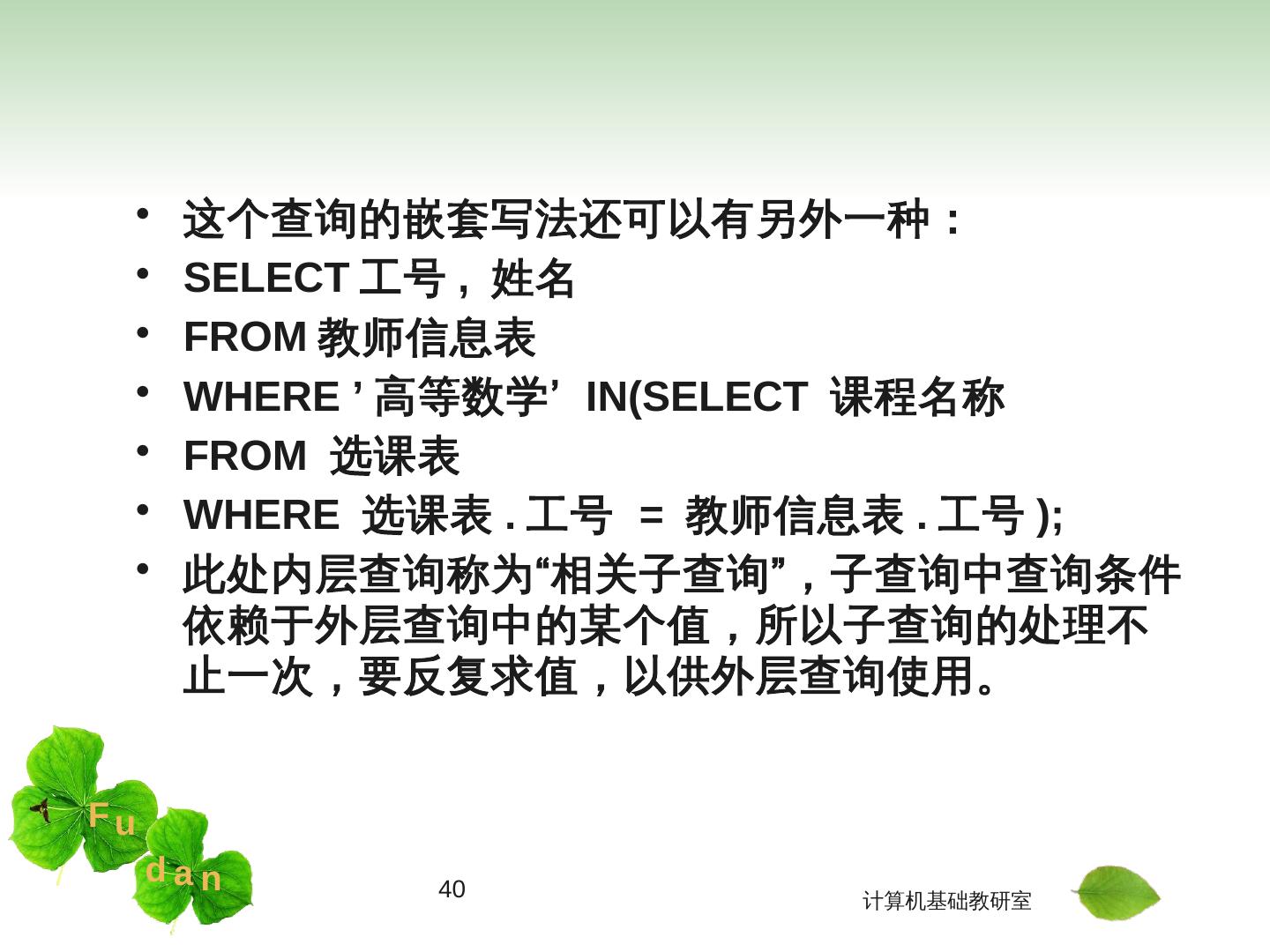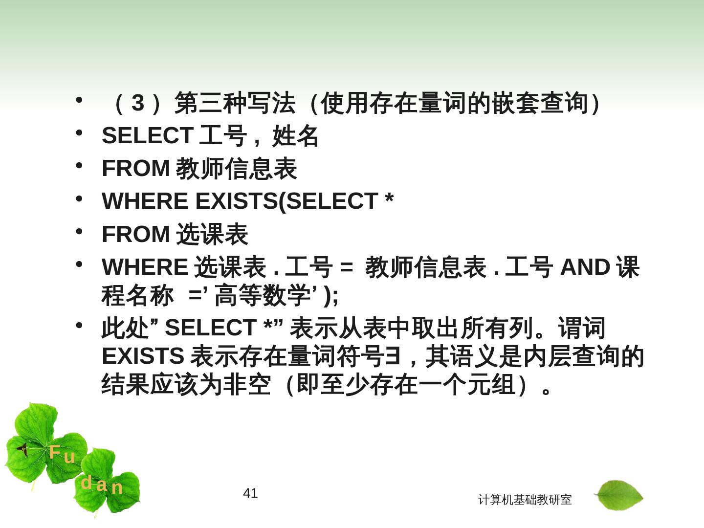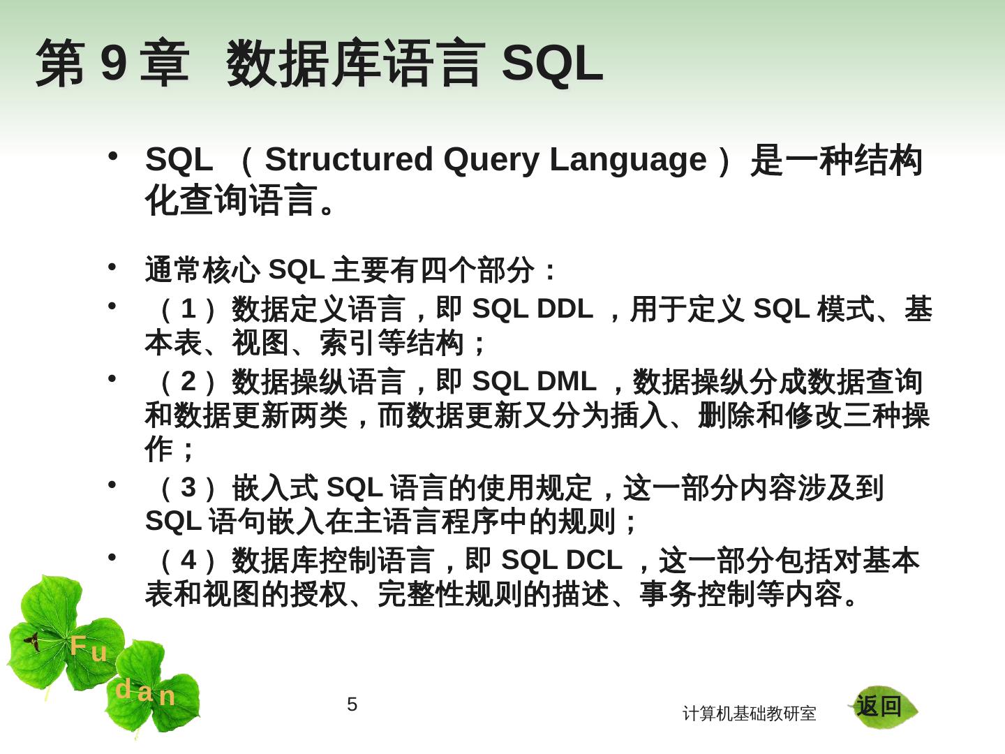 SQL具有如下特点:; (1)SQL具有十分灵活和强大的查询功能,其SELECT语句能完成相当复杂的查询操作,包括各种关系代数操作、统计、排序等操作;; (2)SQL不是 ...