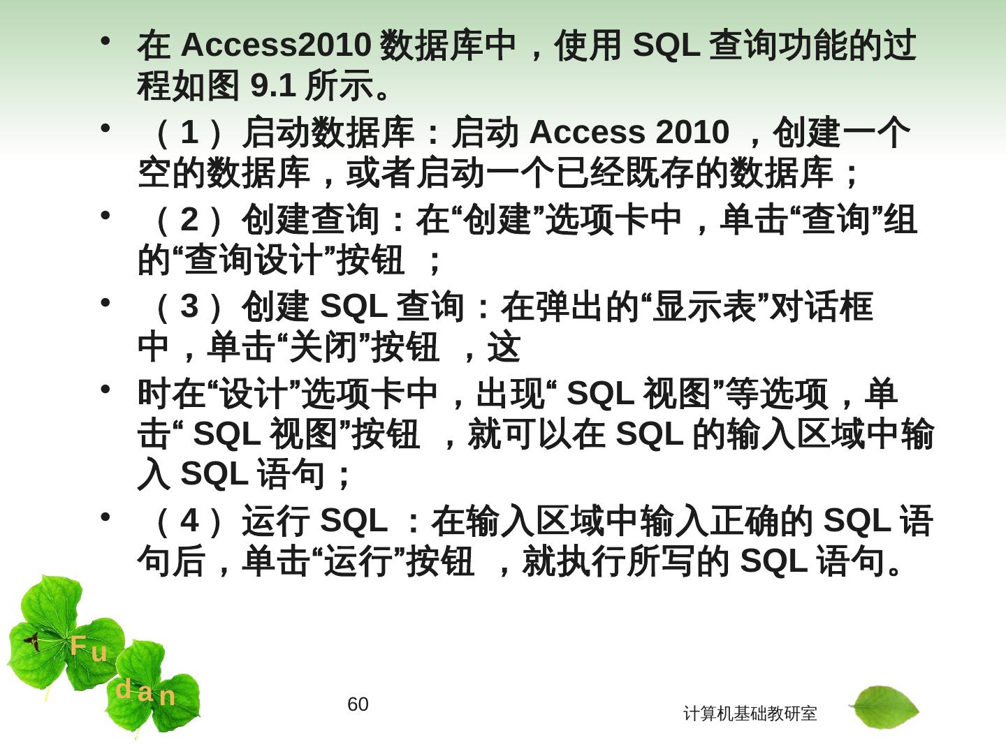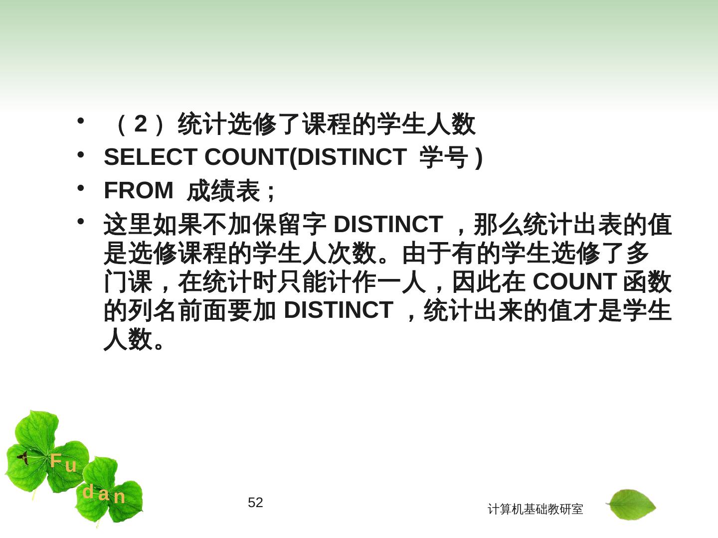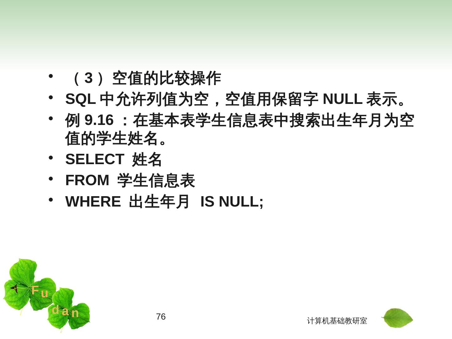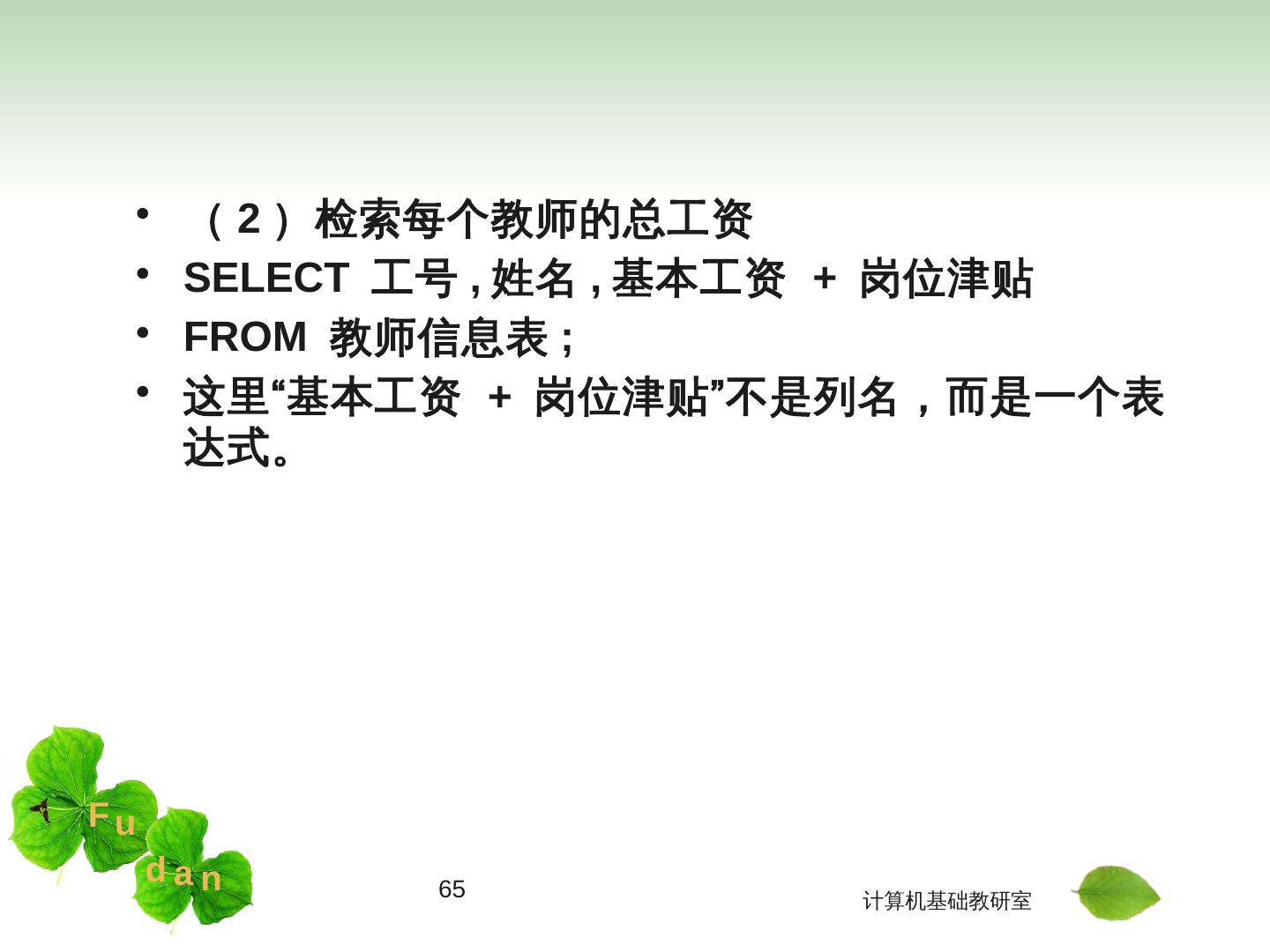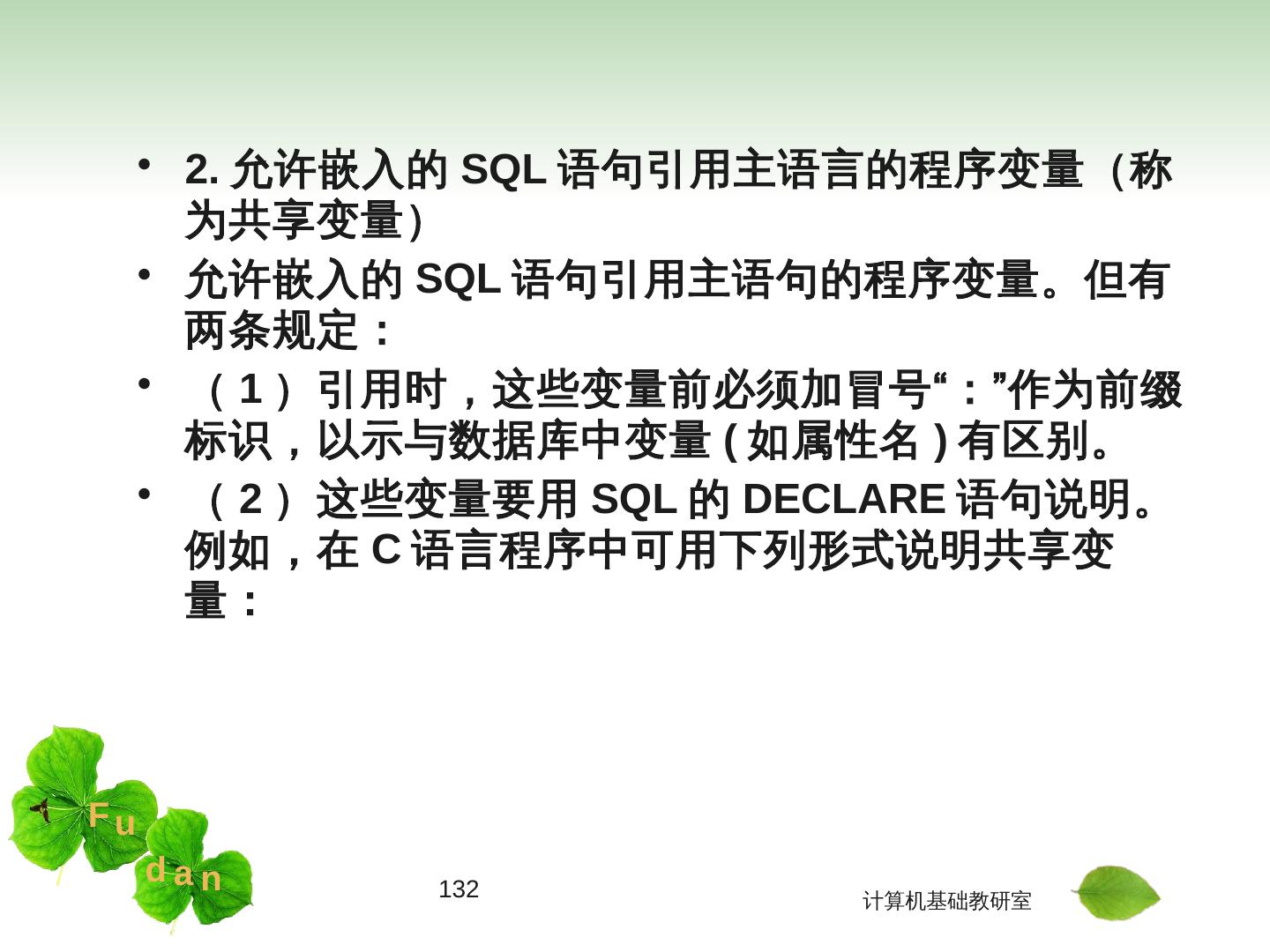 SQL具有如下特点:; (1)SQL具有十分灵活和强大的查询功能,其SELECT语句能完成相当复杂的查询操作,包括各种关系代数操作、统计、排序等操作;; (2)SQL不是 ...