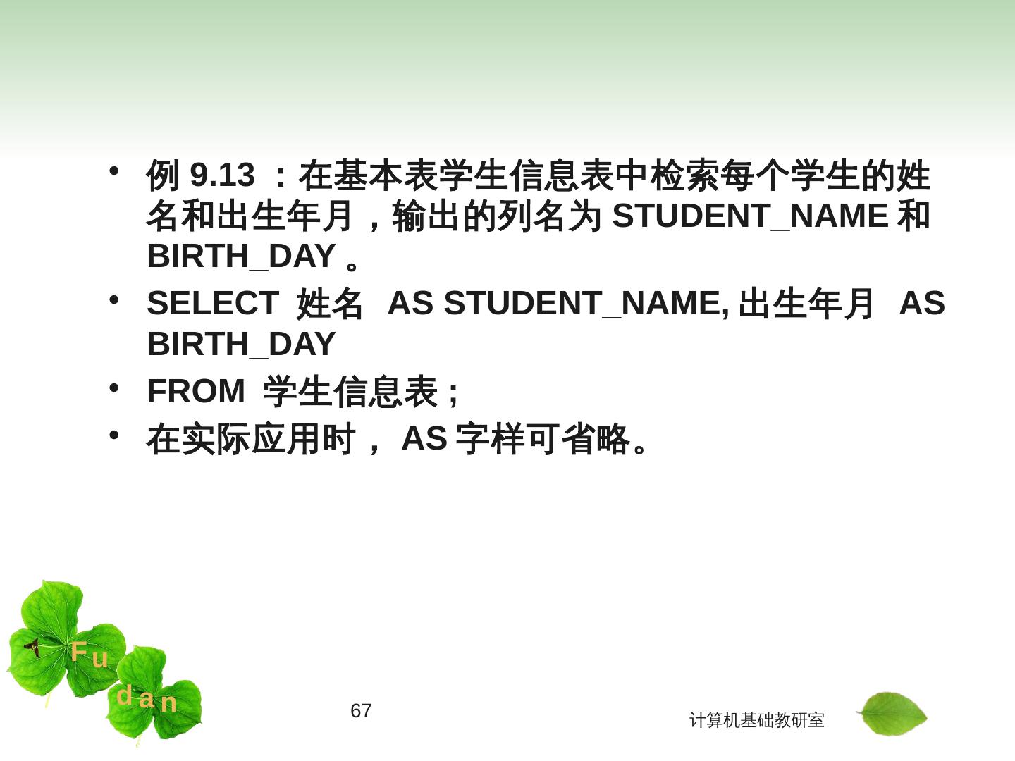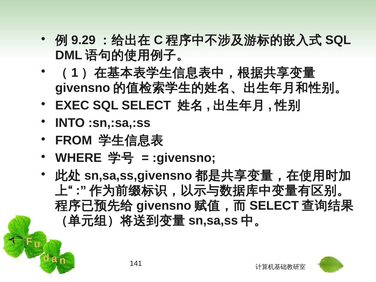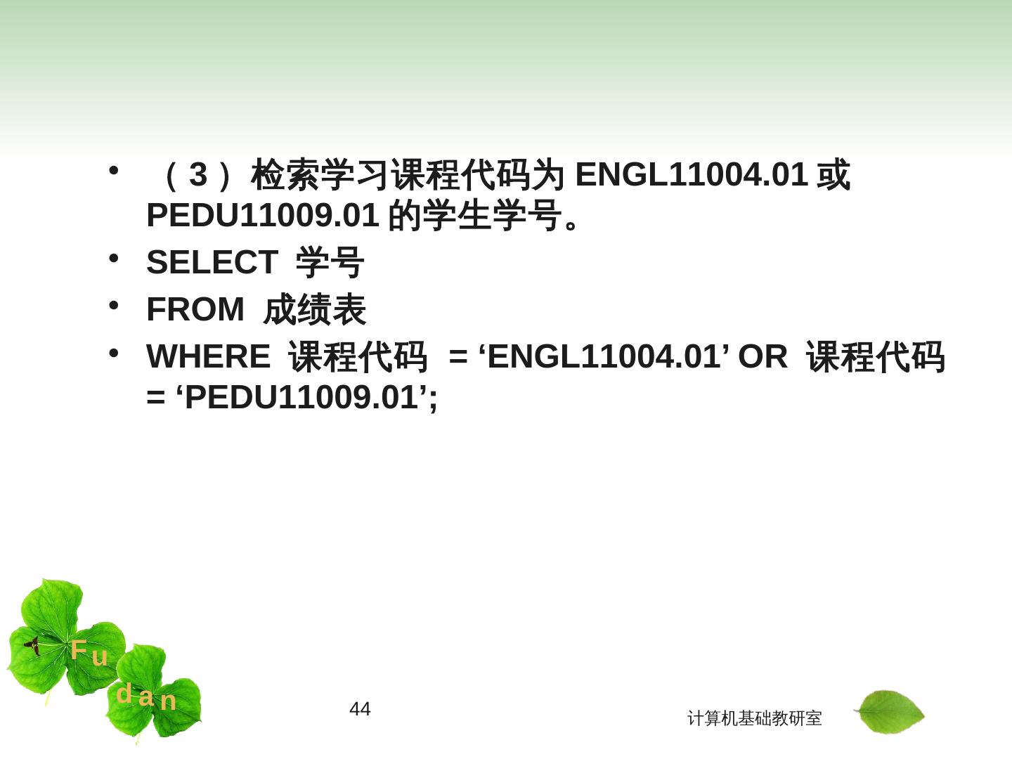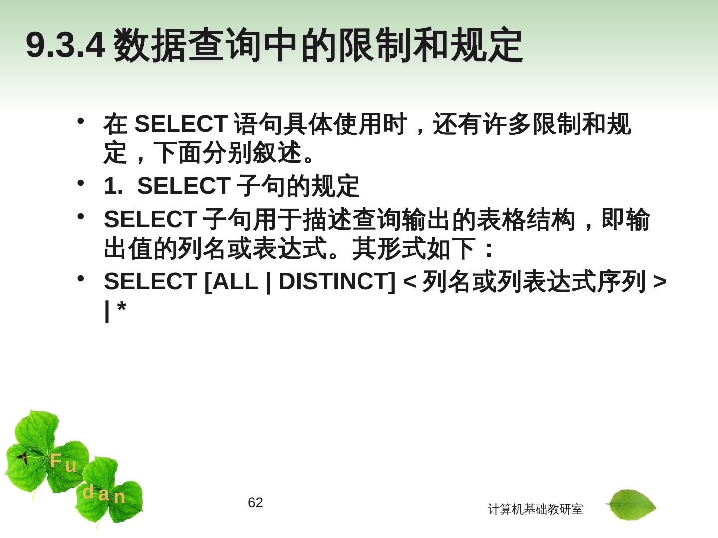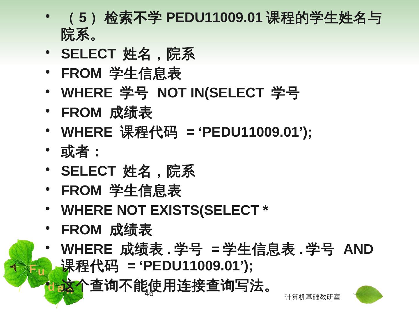 SQL具有如下特点:; (1)SQL具有十分灵活和强大的查询功能,其SELECT语句能完成相当复杂的查询操作,包括各种关系代数操作、统计、排序等操作;; (2)SQL不是 ...