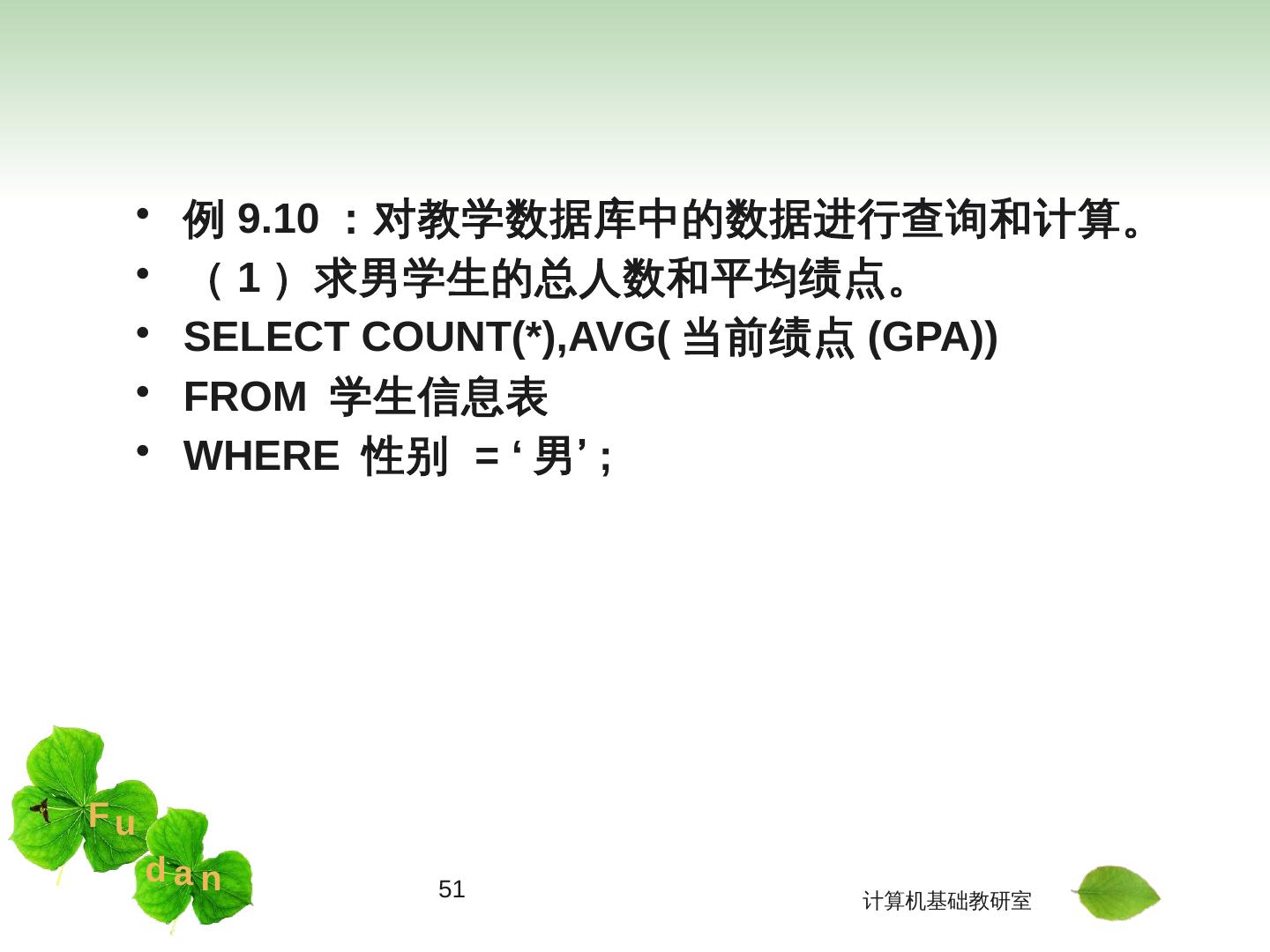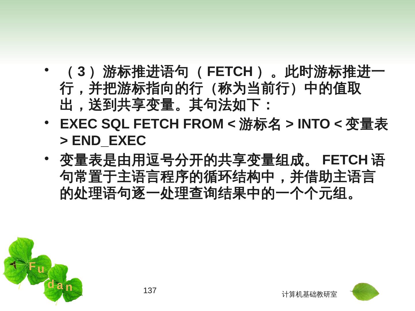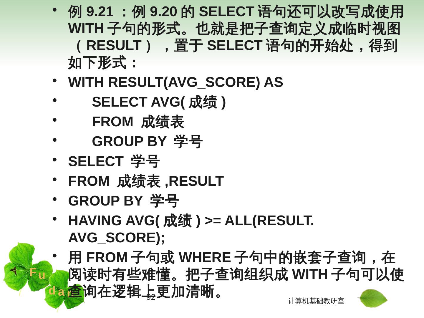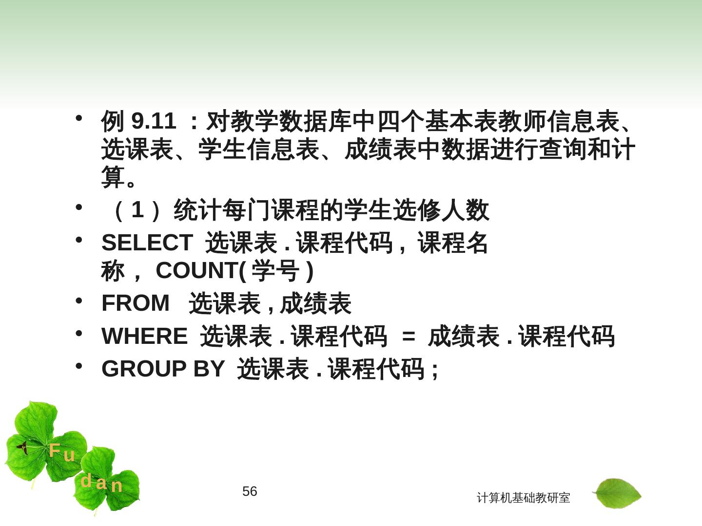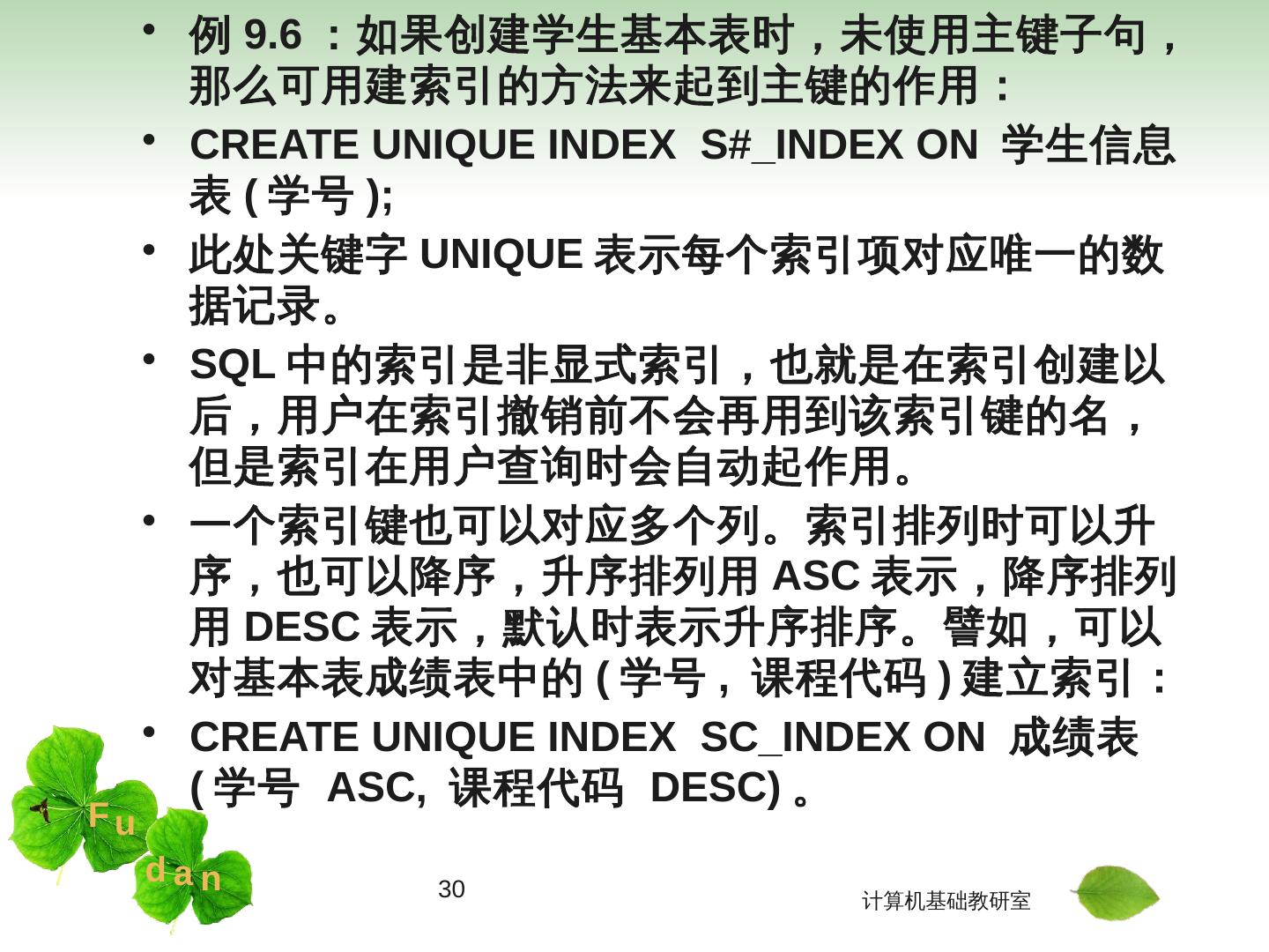 SQL具有如下特点:; (1)SQL具有十分灵活和强大的查询功能,其SELECT语句能完成相当复杂的查询操作,包括各种关系代数操作、统计、排序等操作;; (2)SQL不是 ...