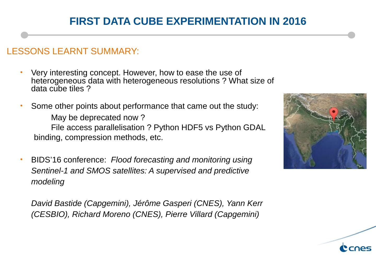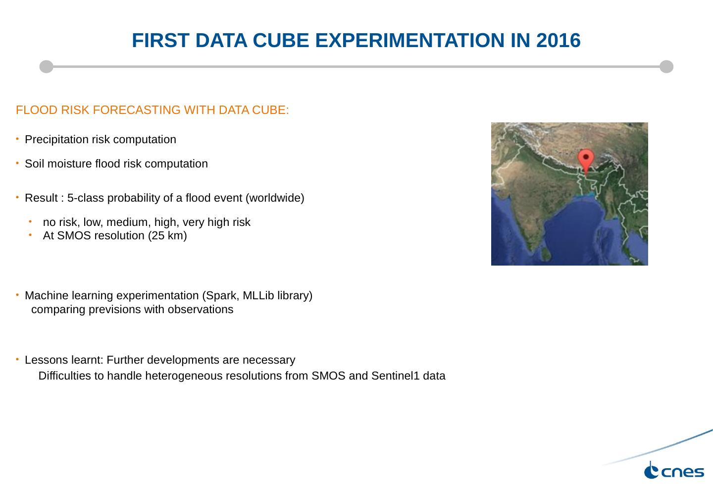 Experimentation of machine learning (apache spark) algorithm for the flood prevision use case. Five Data Cube ingesters were built: S1 IW GRD data (res = 25m)