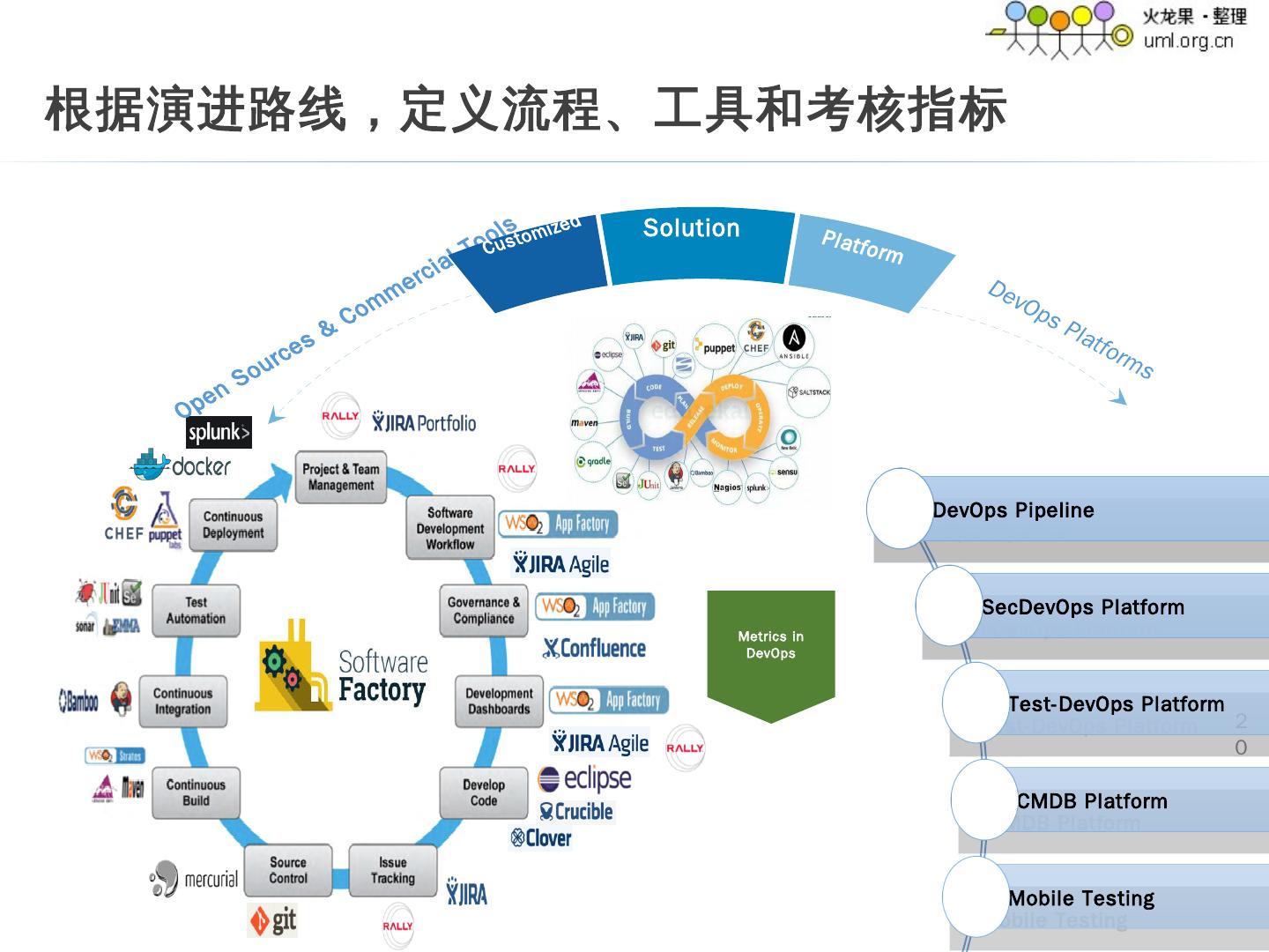 8 . 20 Open Sources & Commercial Tools DevOps Platforms Customized Solution Platform Metrics in DevOps 根据演进路线,定义流程、工具和考核指标