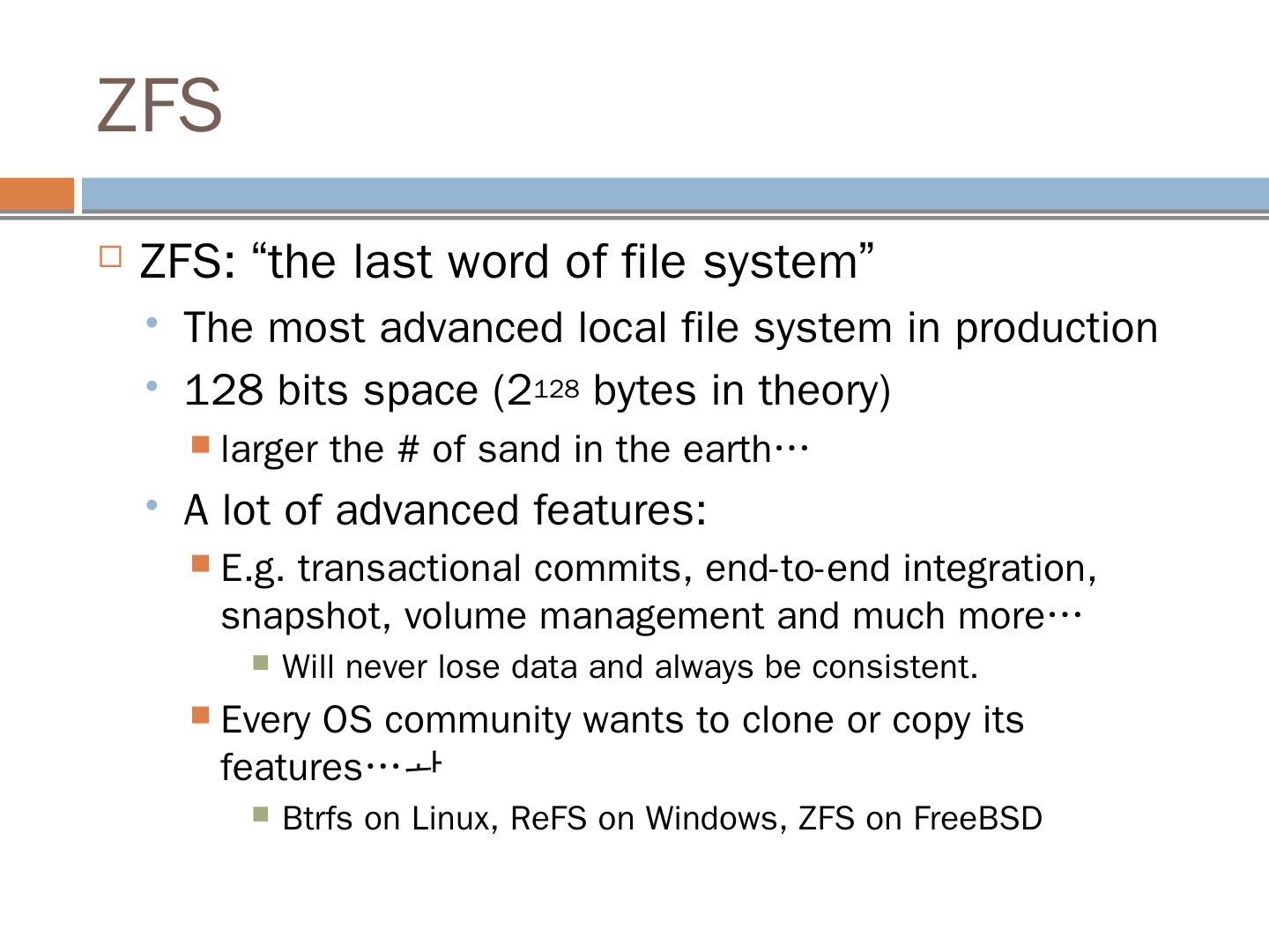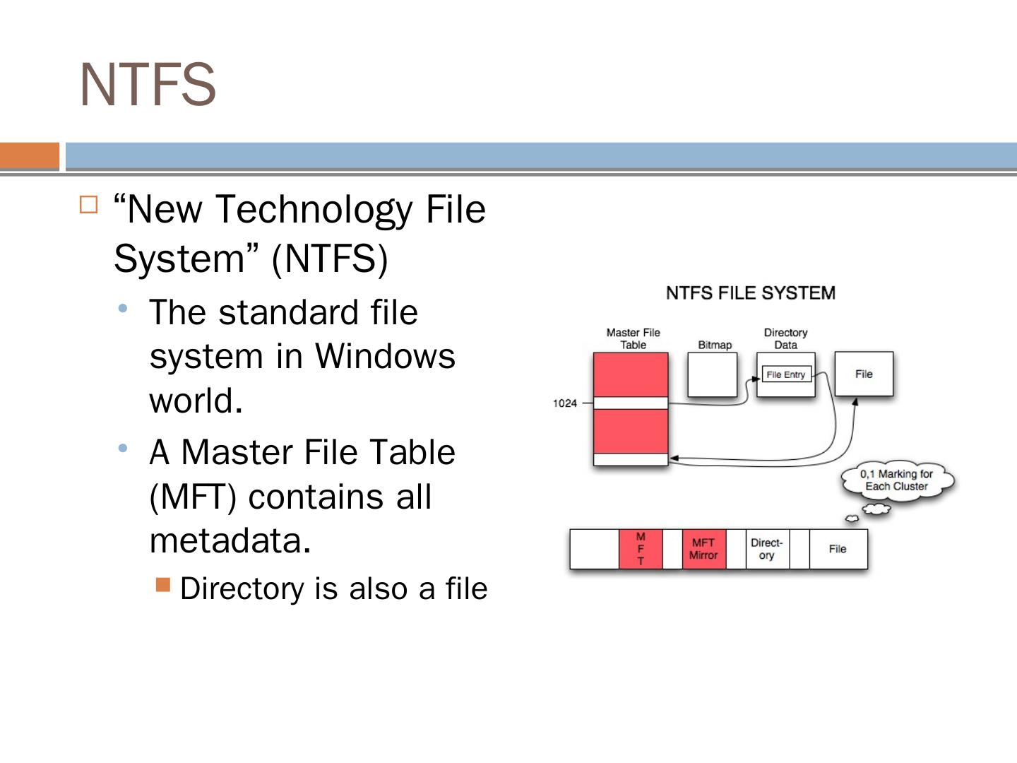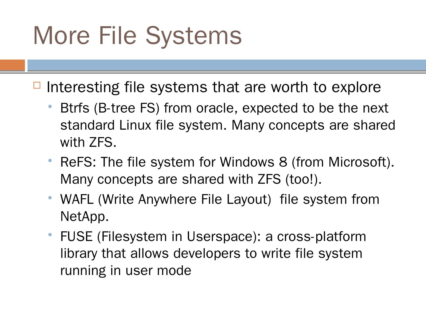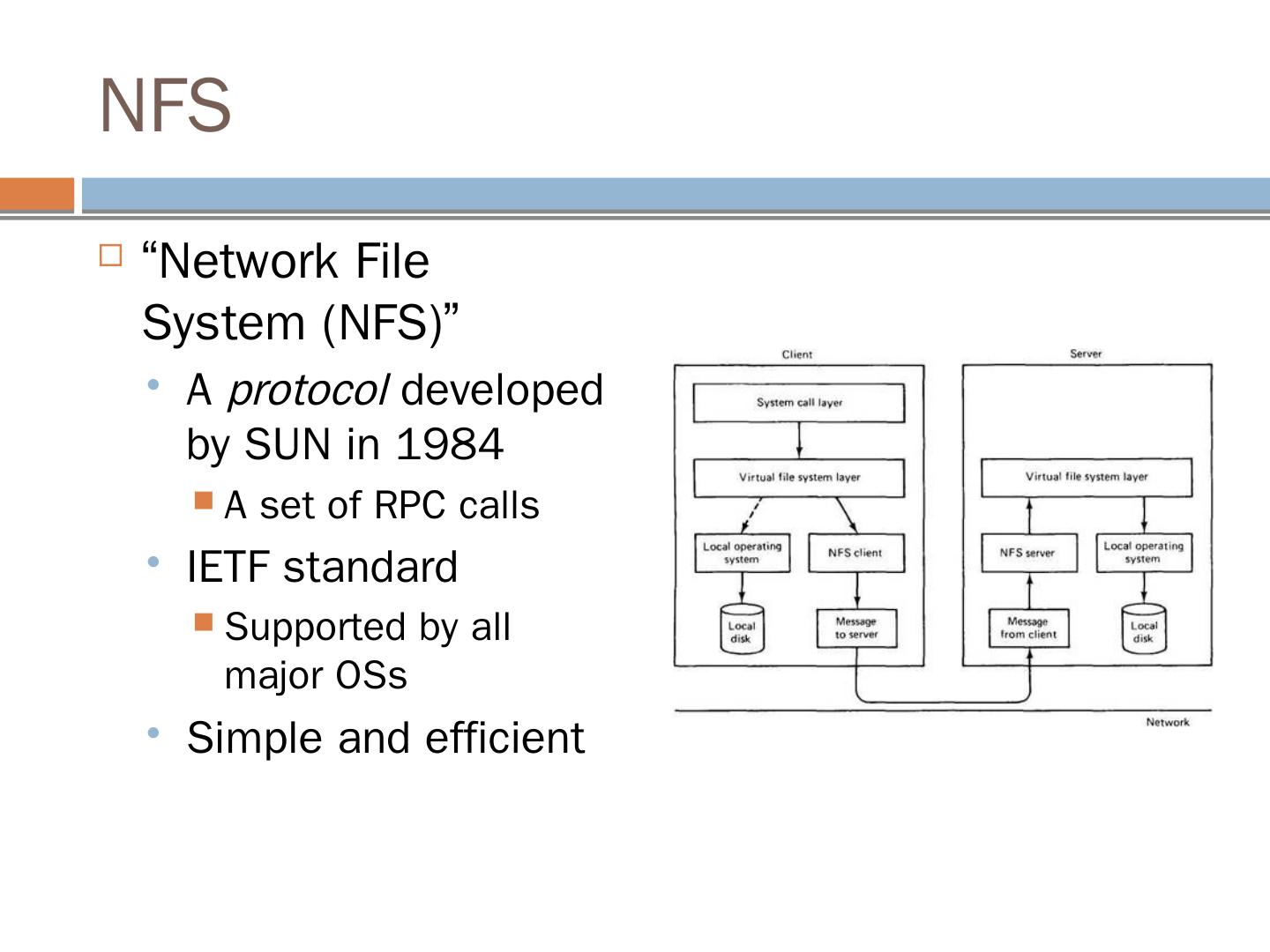 File system is designed between memory and secondary storage (or remote .... Google File System, a special distributed file system for special requirements.