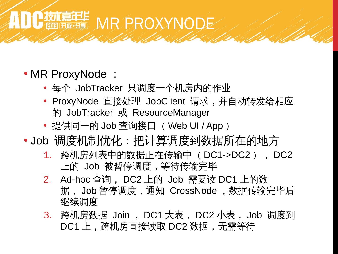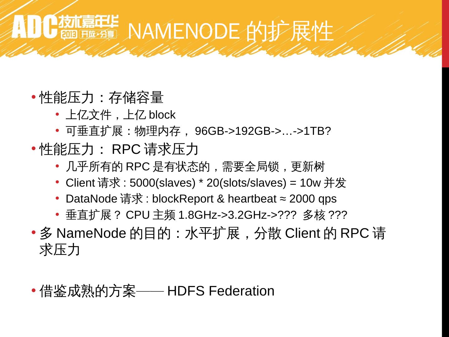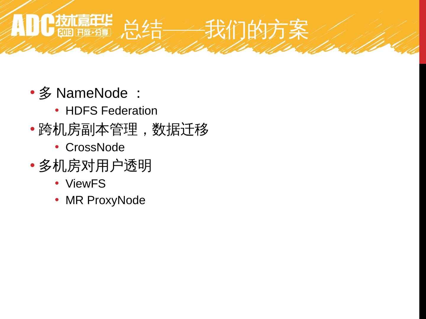 介绍阿里巴巴离线数据处理的现状,大集群数据没有冗余,管理方便和数据共享,因此集群式需求,但是机房规模就是现阶段hadoop集群规模的上限,如何扩展?