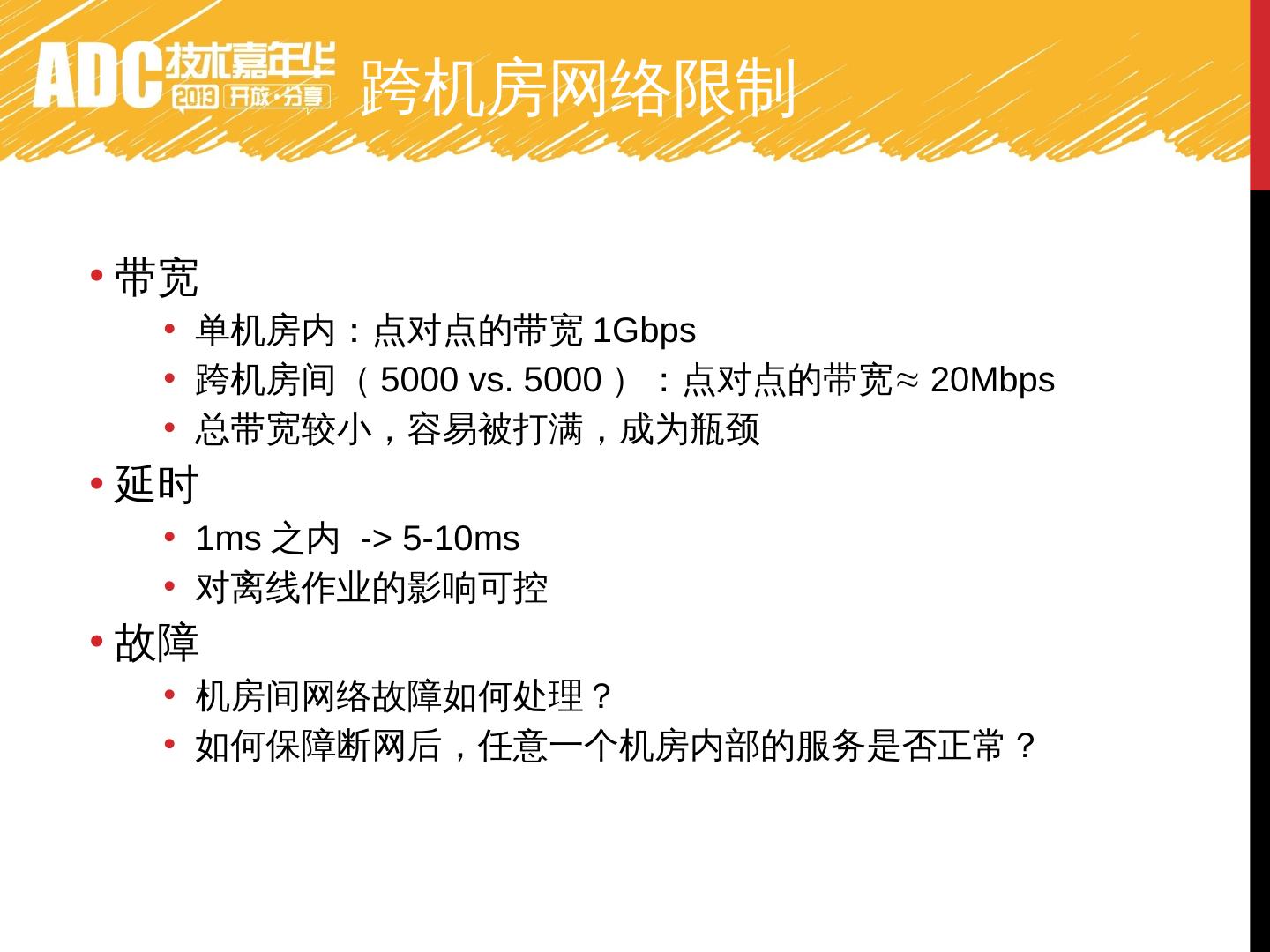 2)跨机房间的网络限制;