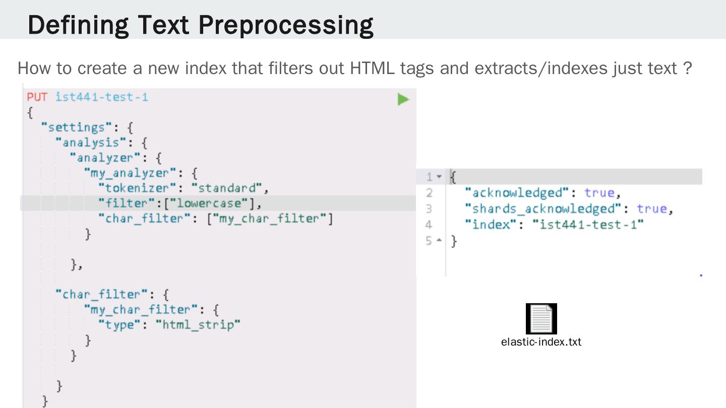 Indexing with Elasticsearch. Agnese Chiatti and Lee Giles. Recap. Crawling the necessary contents with Heritrix; Dumping the results in mirror format for HTML ...