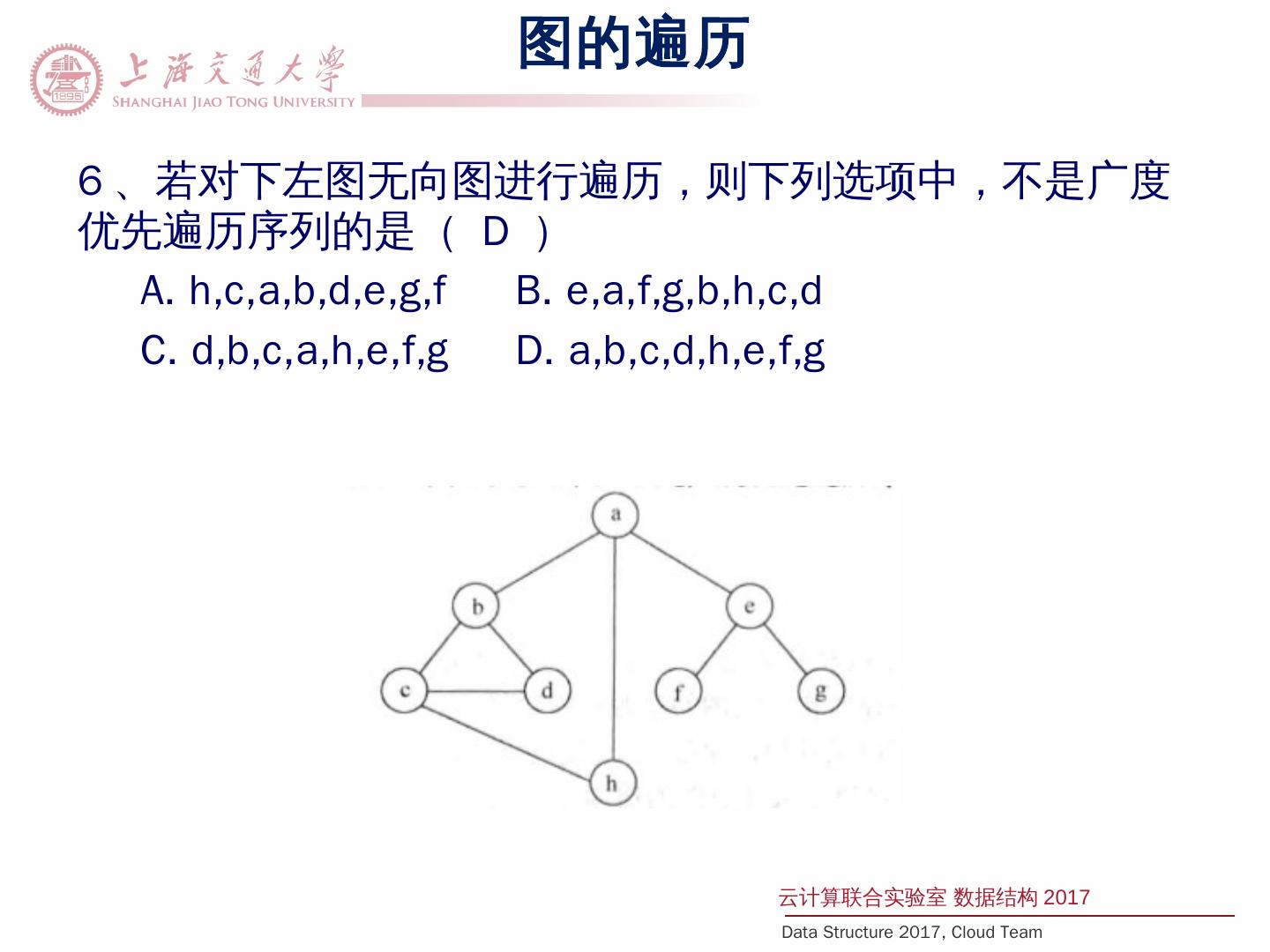2、若无向图G=(V,E)中含有7个顶点,要保证图G在任何情况下都是连通的,则需要的边数最少是( C ... 无向图的每条边(u,v)都可以视为有向图中两条有向边的叠加,都会在邻接矩阵或邻接链表中存储两次 ... 强连通分量:在有向图中的所有极大强连通子图。 ... 6、若对下左图无向图进行遍历,则下列选项中,不是广度优先遍历序列的是( D ...