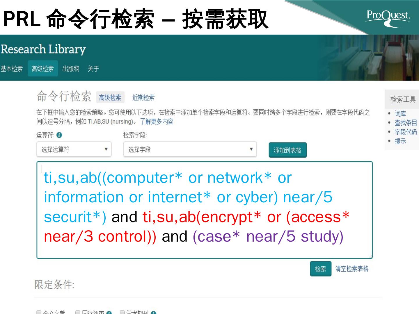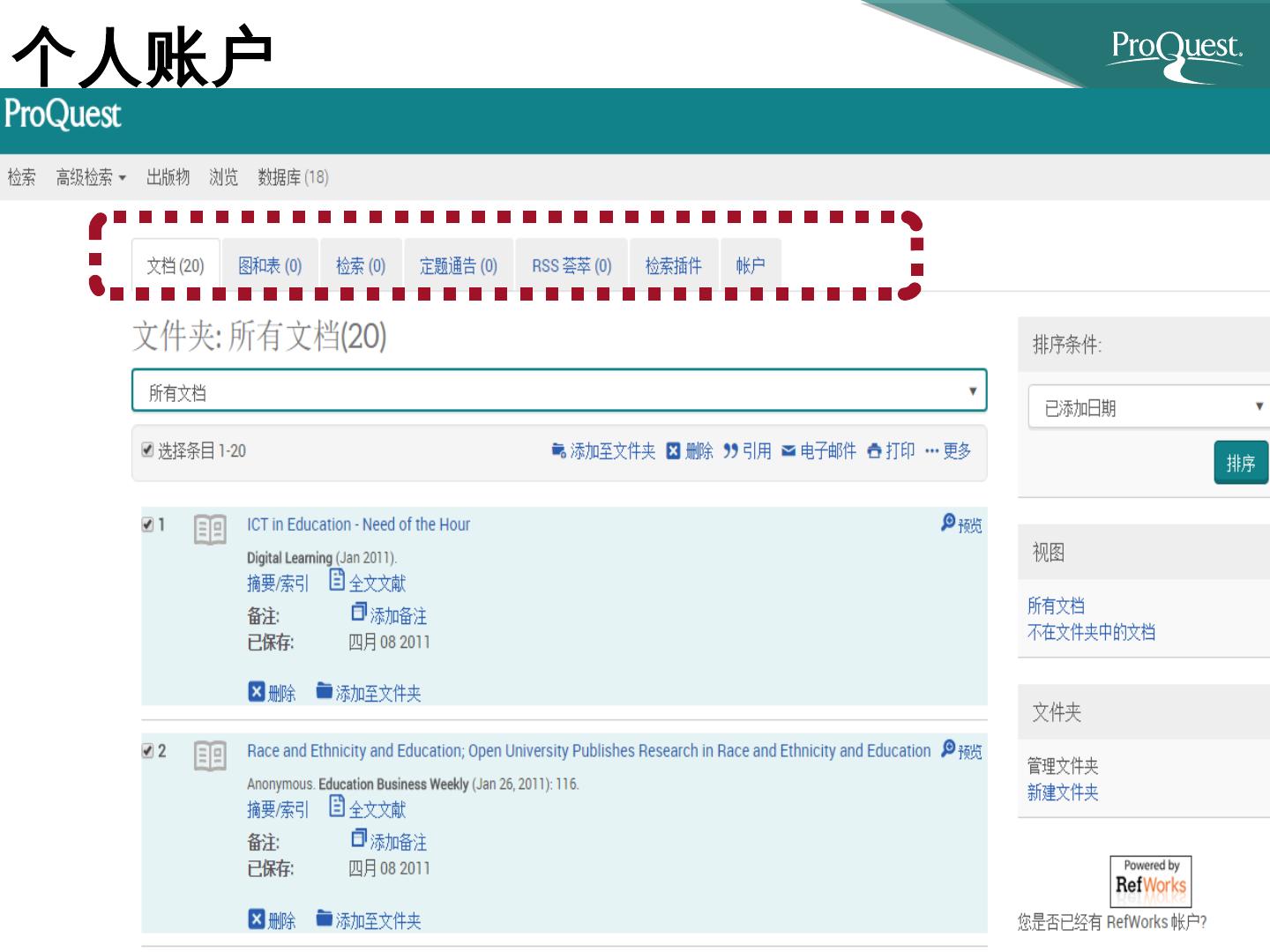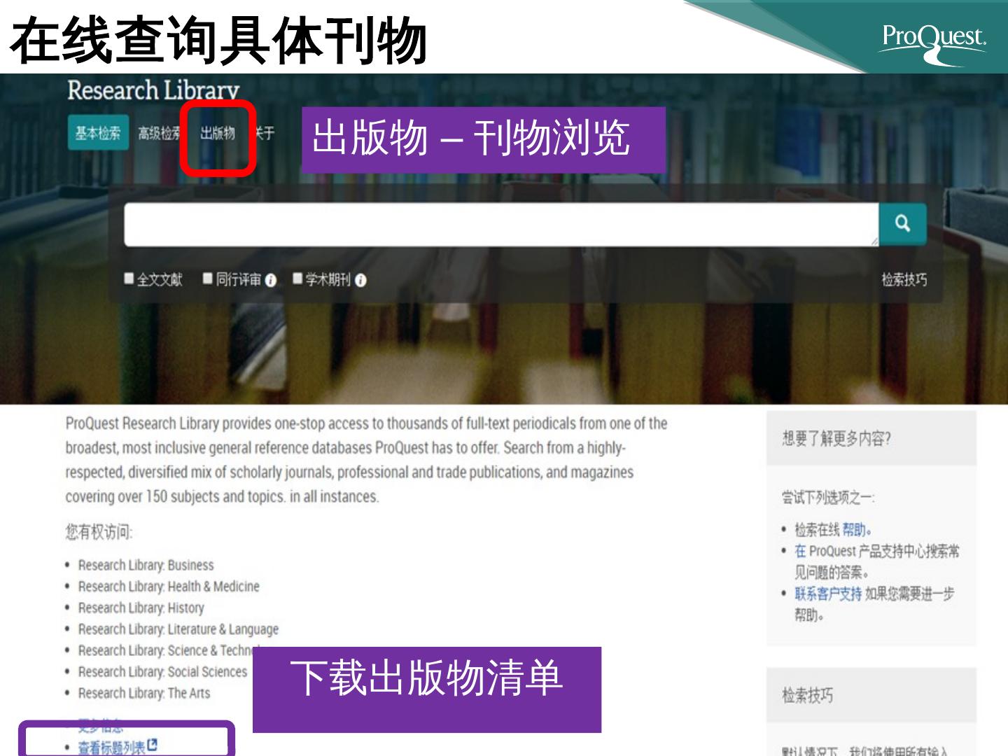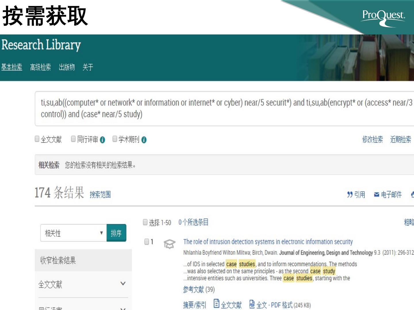 ... 及博士生院都在ProQuest发表论文; 2016年8月,提供300万篇记录,其中PQDT A人文社科140多万,PQDT B科学技术180多万. 2.Research Library 综合类期刊库.