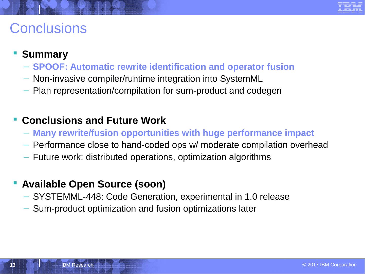 Simplify development / usage of ML tasks or algorithms; SystemML: High-level language data independence / plan generation; State-of-the-art compilers: ...