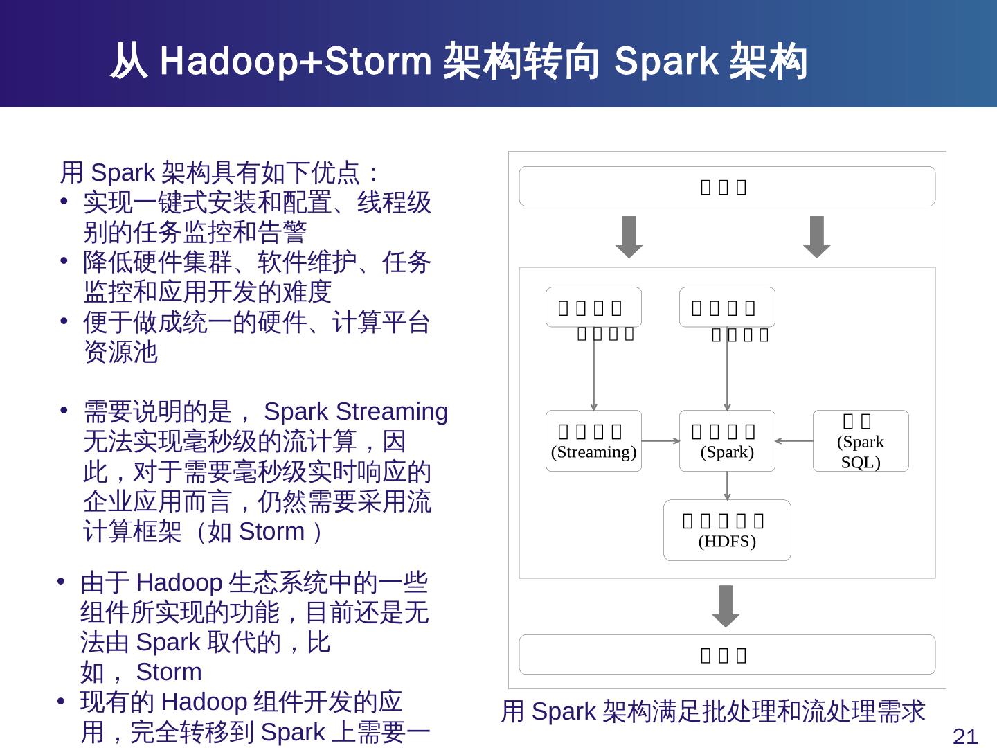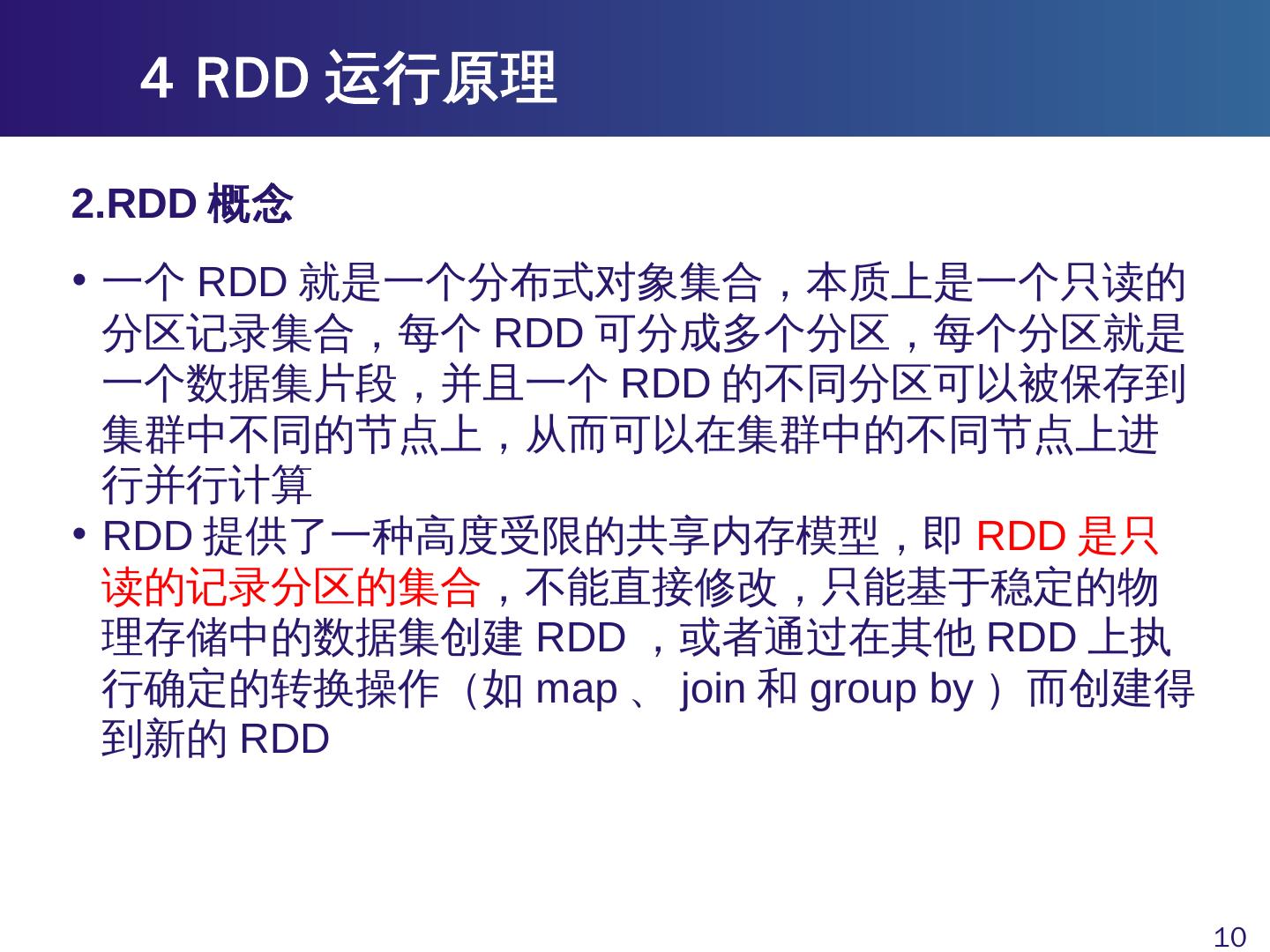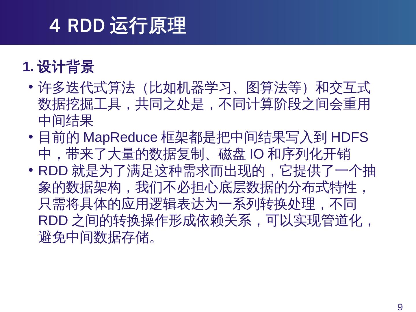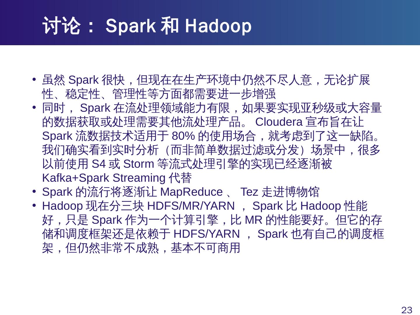 ... DAG:是Directed Acyclic Graph(有向无环图)的简称,反映RDD之间的依赖关系 ... 与Hadoop MapReduce计算框架相比,Spark所采用的Executor有两个优点:.