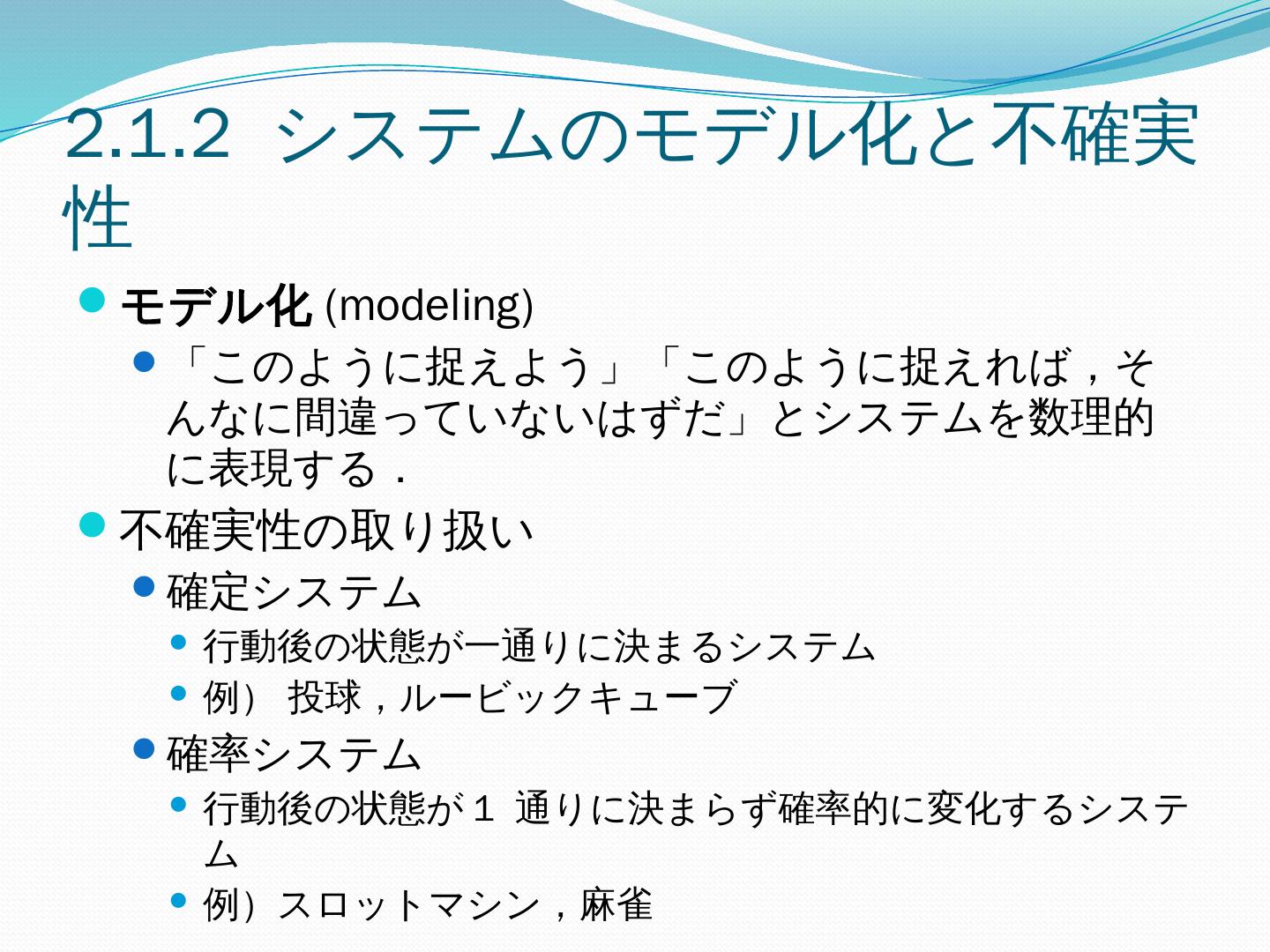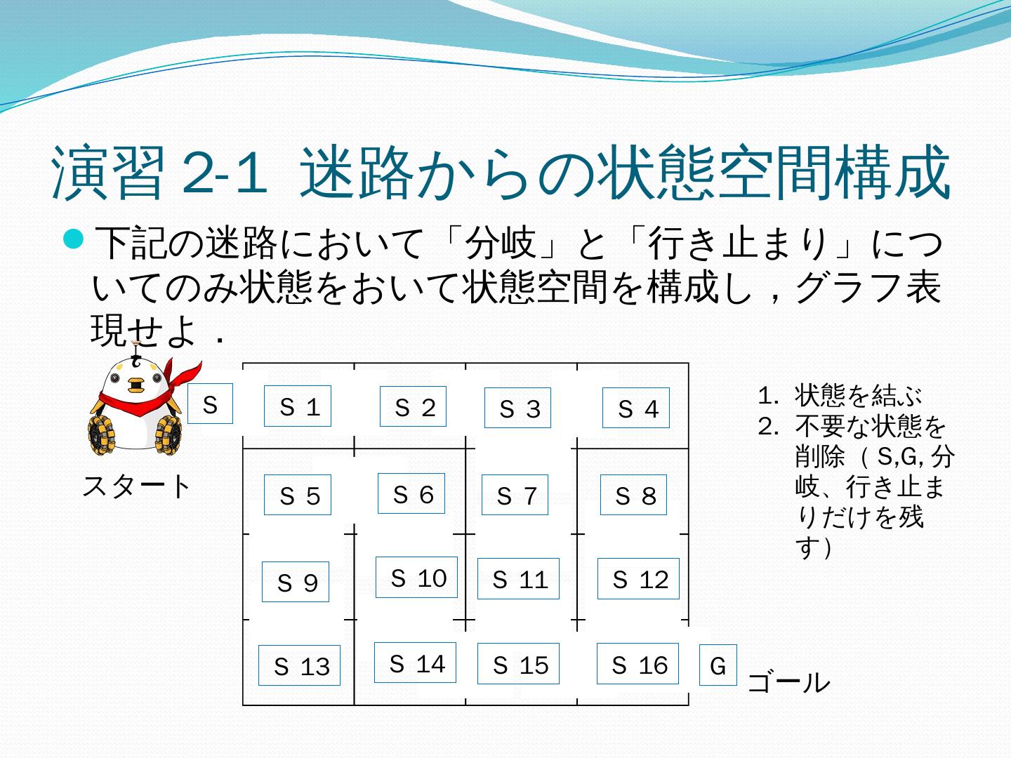 人工知能概論 第2回 探索(1) 状態空間モデル