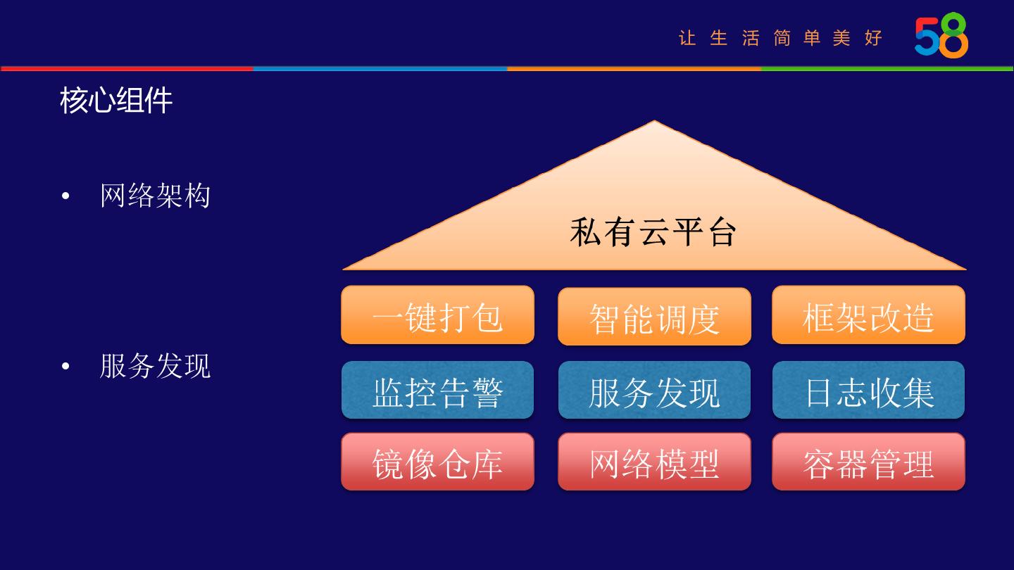 12 . 让 生 活 简 单 美 好 核心组件 • 网络架构 • 服务发现