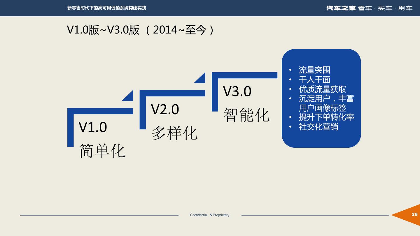 27 .新零售时代下的高可用促销系统构建实践 车商城促销系统全貌 Confidential & Proprietary 27