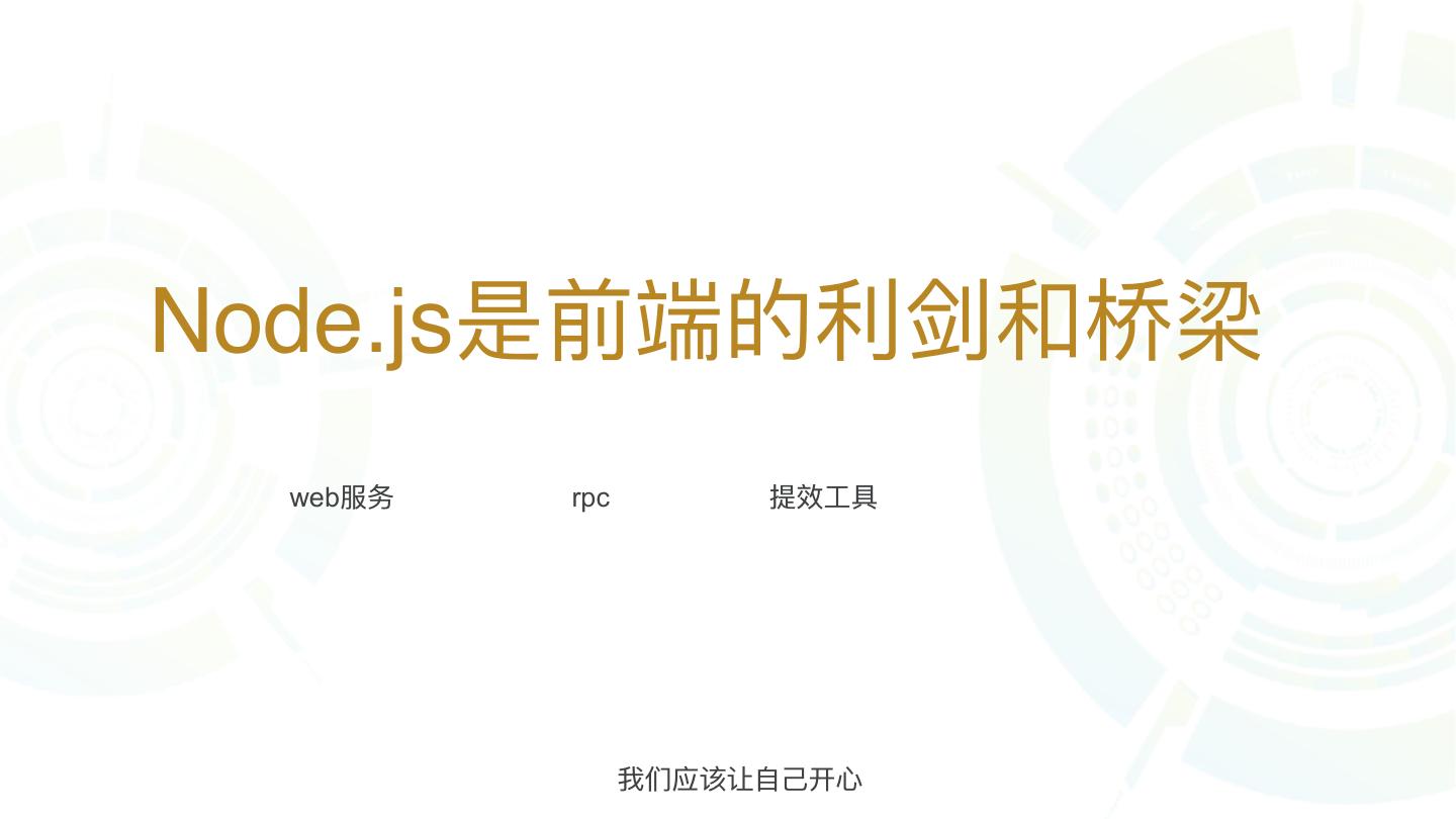 26 .Node.js是前端的利利剑和桥梁梁 web服务 rpc 提效⼯工具 我们应该让⾃自⼰己开⼼心