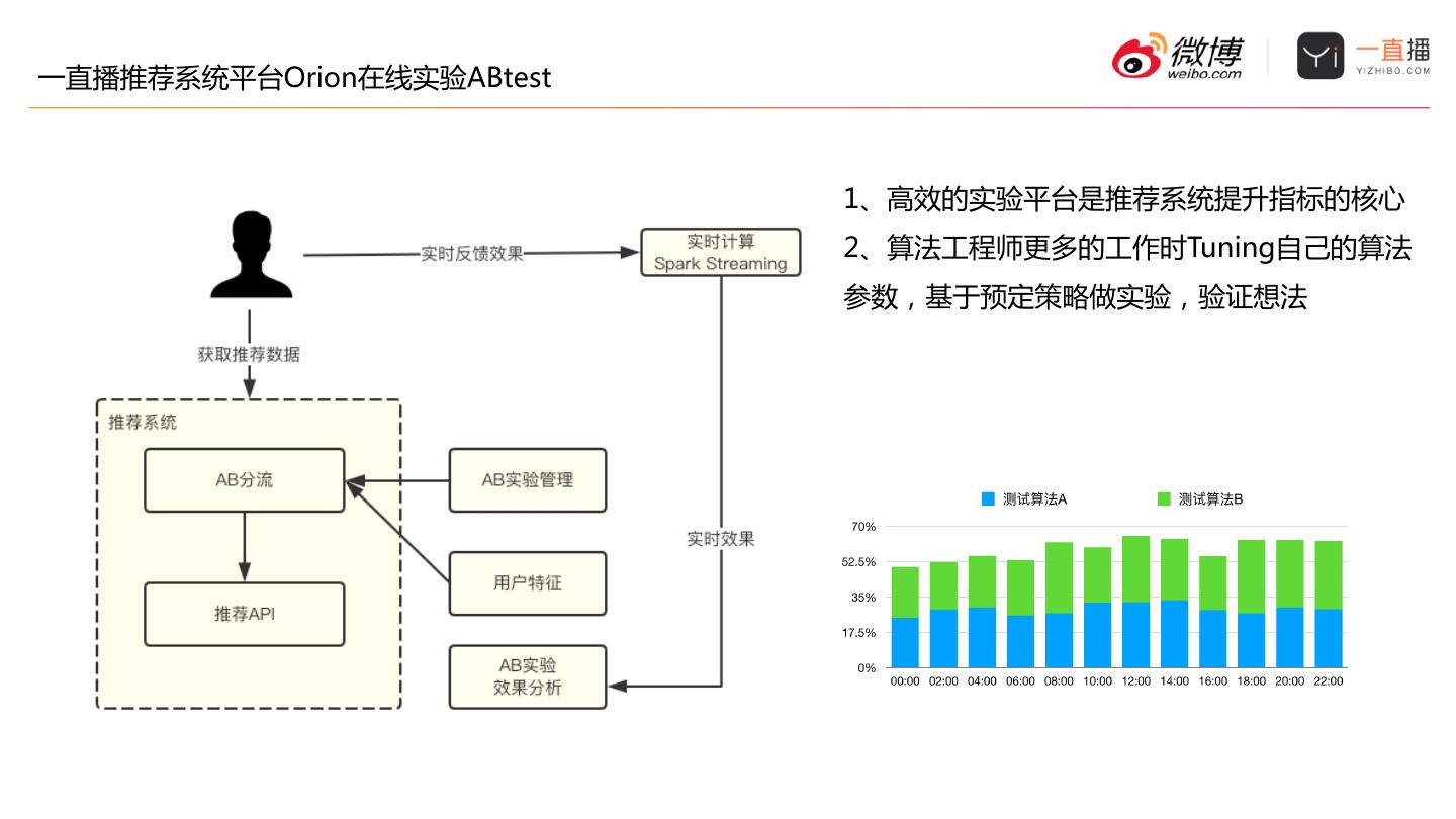 13 .一直播推荐系统平台Orion在线实验ABtest 1、高效的实验平台是推荐系统提升指标的核心 2、算法工程师更多的工作时Tuning自己的算法 参数,基于预定策略做实验,验证想法