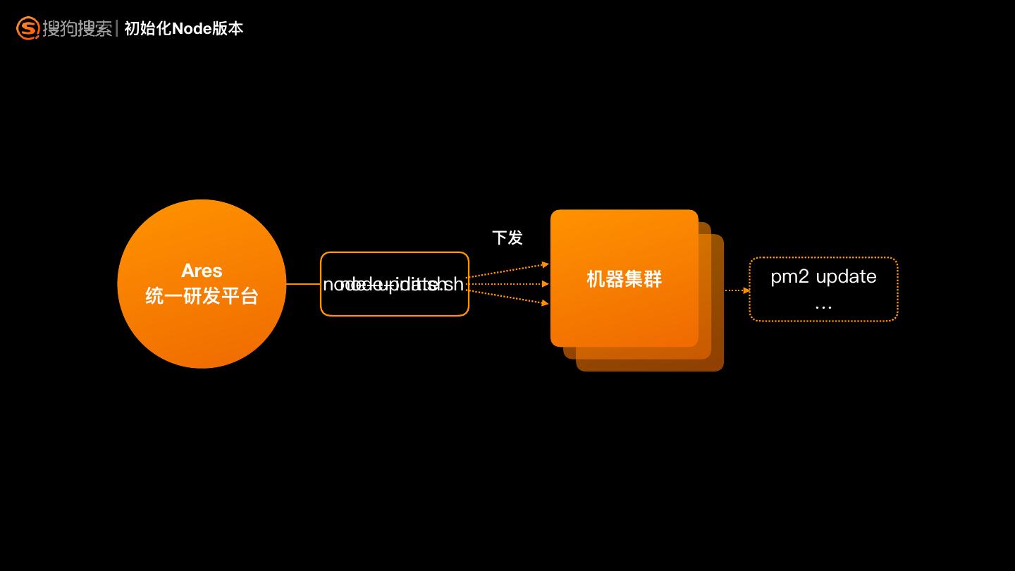 17 .初始化Node版本 下发 Ares 机器器集群 pm2 update node-update.sh node-init.sh 统⼀一研发平台 …