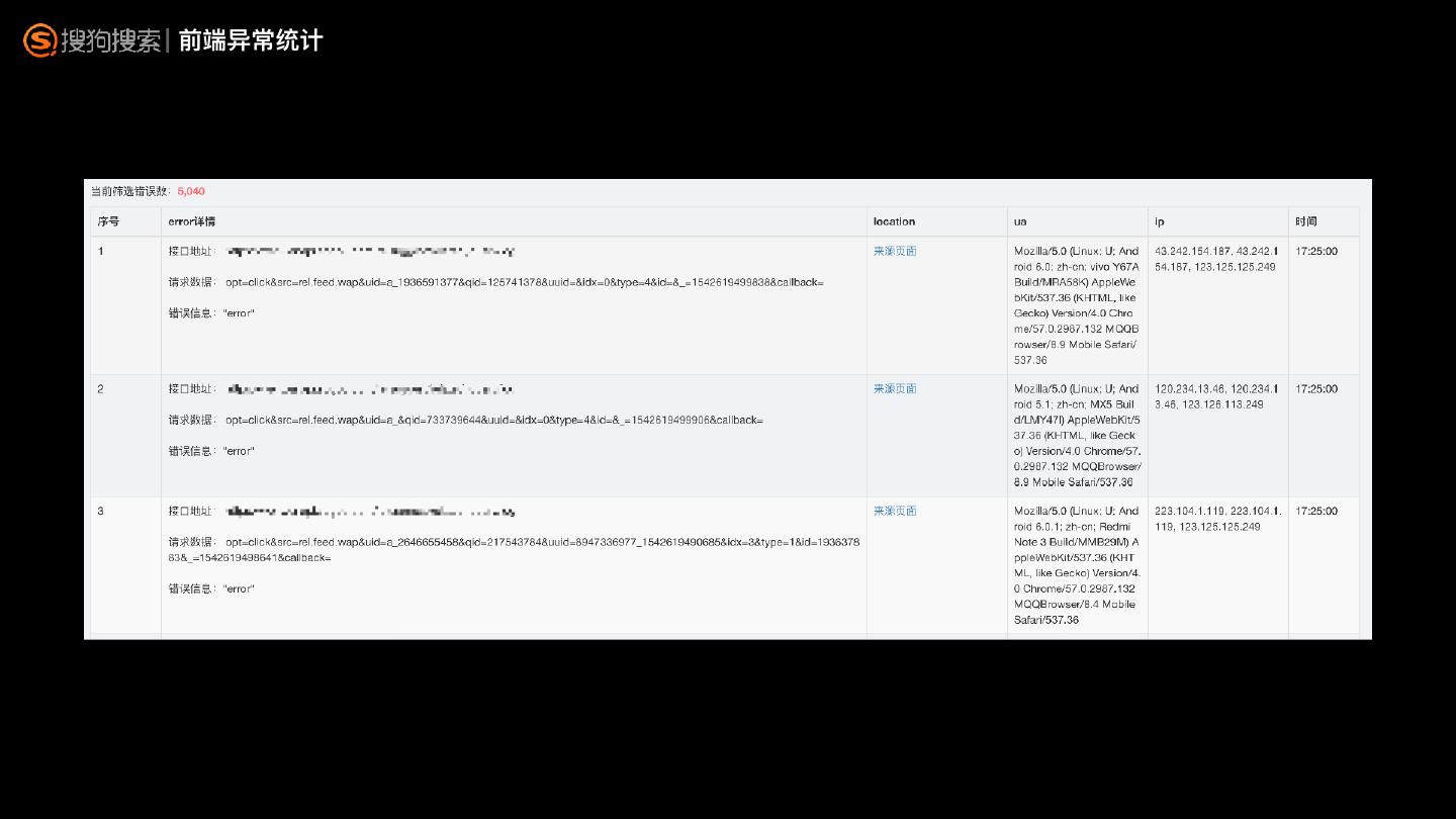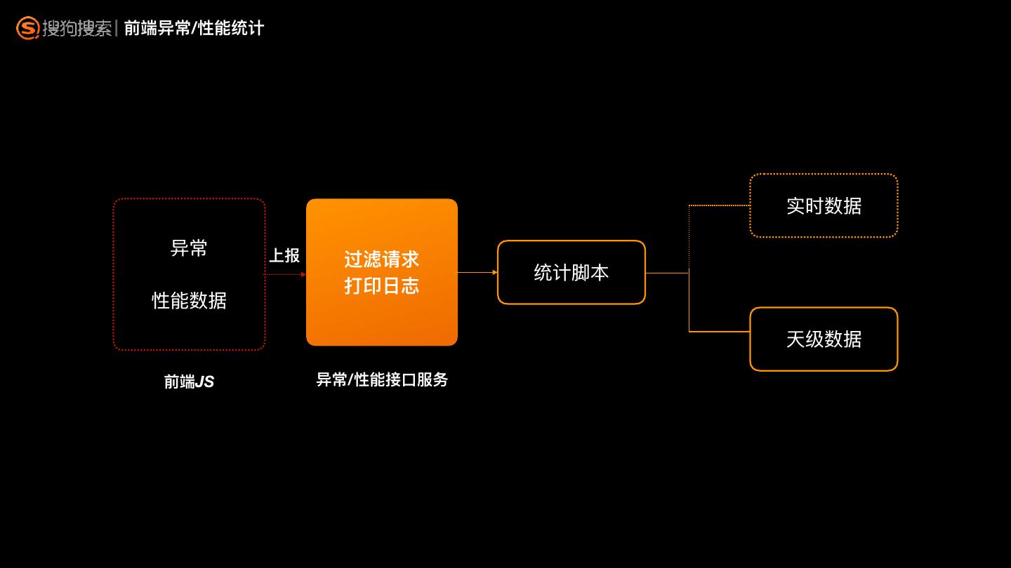 25 .前端异常/性能统计 实时数据 异常 上报 过滤请求 统计脚本 打印⽇日志 性能数据 天级数据 前端JS 异常/性能接⼝口服务
