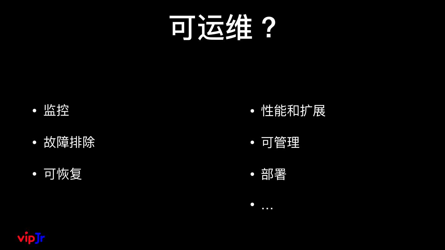 4 . 可运维 ? • 监控 • 性能和扩展 • 故障排除 • 可管理理 • 可恢复 • 部署 • …
