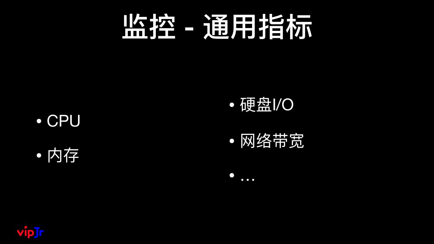 6 . 监控 - 通⽤用指标 • 硬盘I/O • CPU • ⽹网络带宽 • 内存 •…