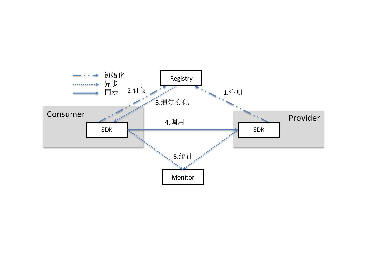 12 . Registry 2. 1. 3. Proxy Proxy Consumer Provider 4. Thin SDK Thin SDK 5. Monitor