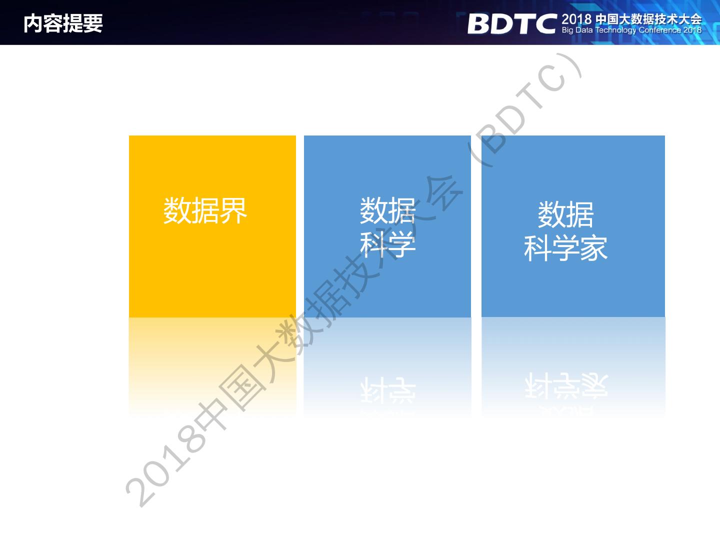 2 . 内容提要 20 18 中 数据界 国 大 数 据 技 术 科学 数据 大 会 ( BD TC ) 数据 科学家