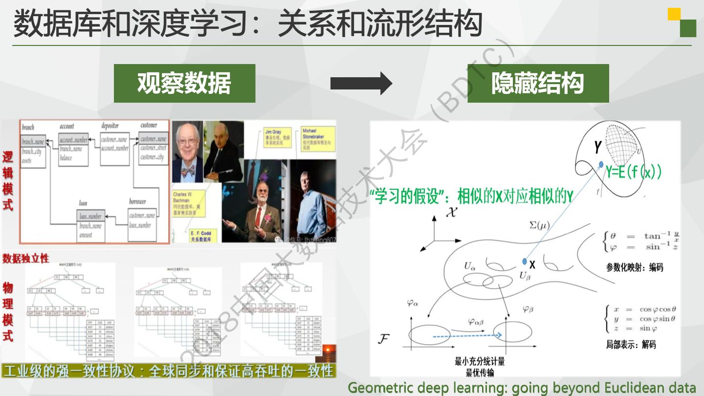 3 .数据库和深度学习:关系和流形结构 ) TC 观察数据 隐藏结构 BD ( 会 大 术 技 据 数 大 国 中 18 20 Geometric deep learning: going beyond Euclidean data