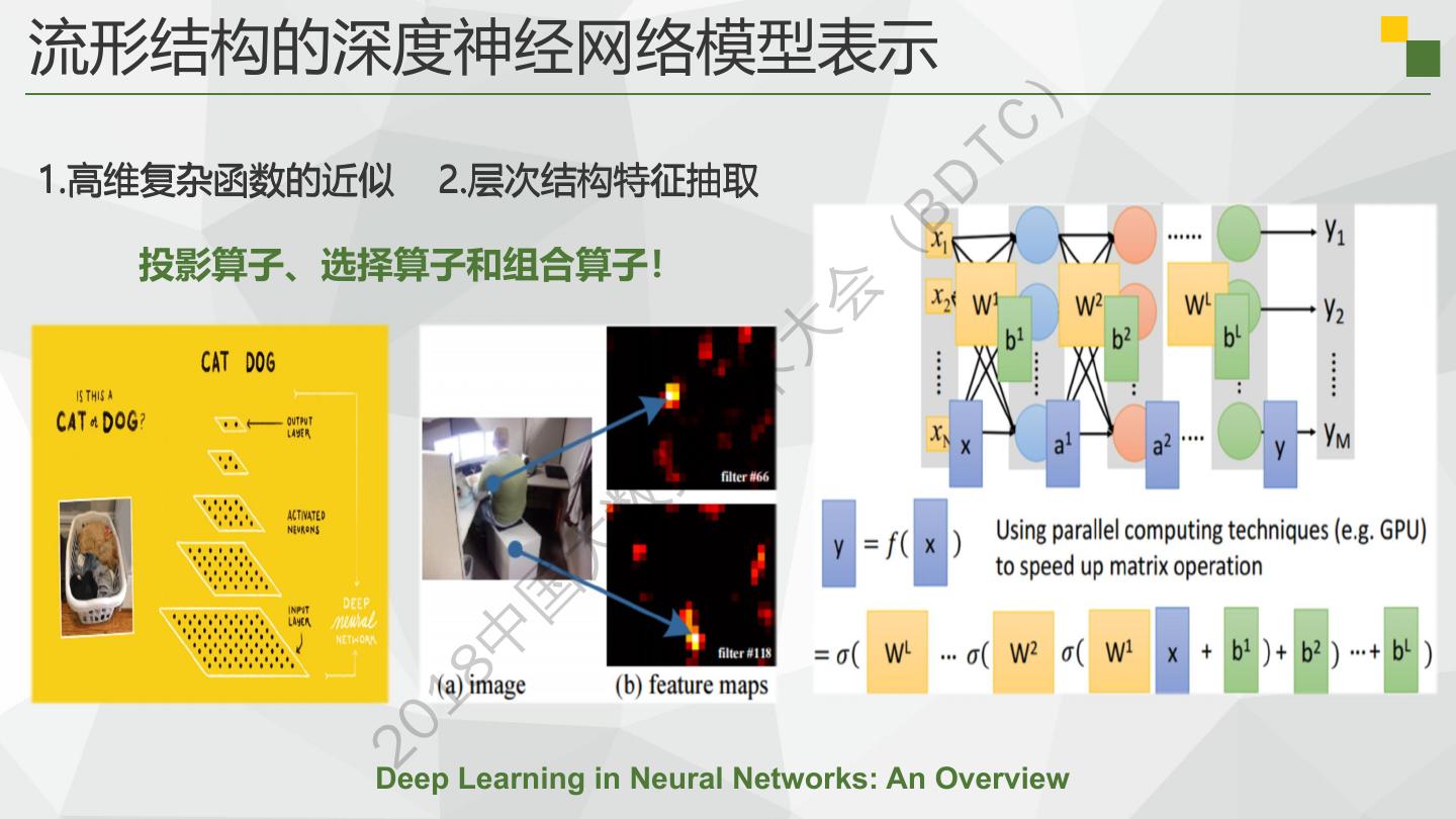 5 .流形结构的深度神经网络模型表示 ) TC 1.高维复杂函数的近似 2.层次结构特征抽取 BD ( 投影算子、选择算子和组合算子! 会 大 术 技 据 数 大 国 中 18 20 Deep Learning in Neural Networks: An Overview