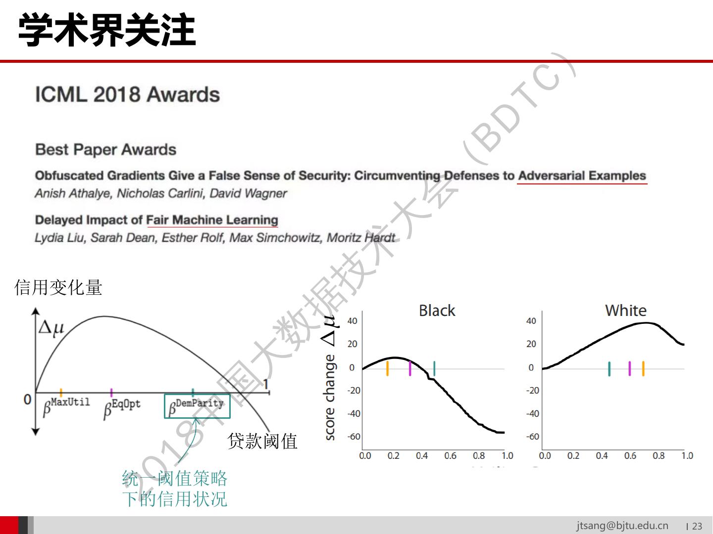 22 .学术界关注 ) TC BD ( 会 大 术 技 据 数 大 国 中 18 成功攻击了ICLR2018 20 八篇防御文章中的七篇 jtsang@bjtu.edu.cn22 22