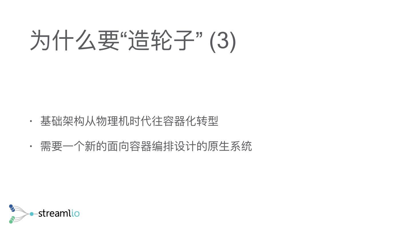 9 .为什什么要“造轮⼦子” (3) • 基础架构从物理理机时代往容器器化转型 • 需要⼀一个新的⾯面向容器器编排设计的原⽣生系统