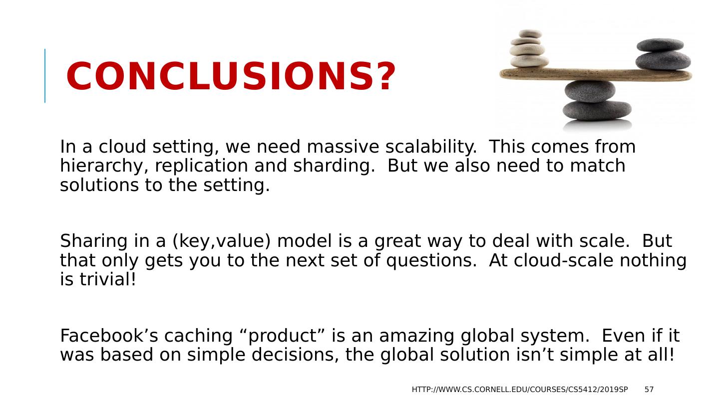 8 .How their paper approached it The paper uses a “chalkboard analysis” to think about scaling for a system that behaves like a database. It could be an actual database like SQL Server or Oracle But their “model” also covered any other storage layer where you want strong guarantees of data consistency. Mostly they talk about a single replicated storage instance, but look at structured versions too. http://www.cs.cornell.edu/courses/cs5412/2019sp 8