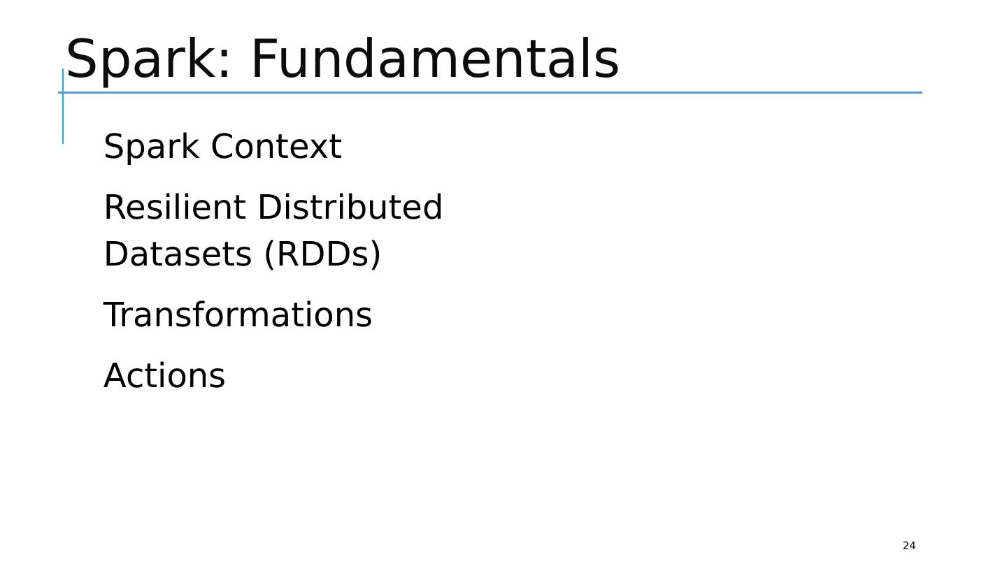 24 .Spark: Fundamentals 24 Spark Context Resilient Distributed Datasets (RDDs) Transformations Actions