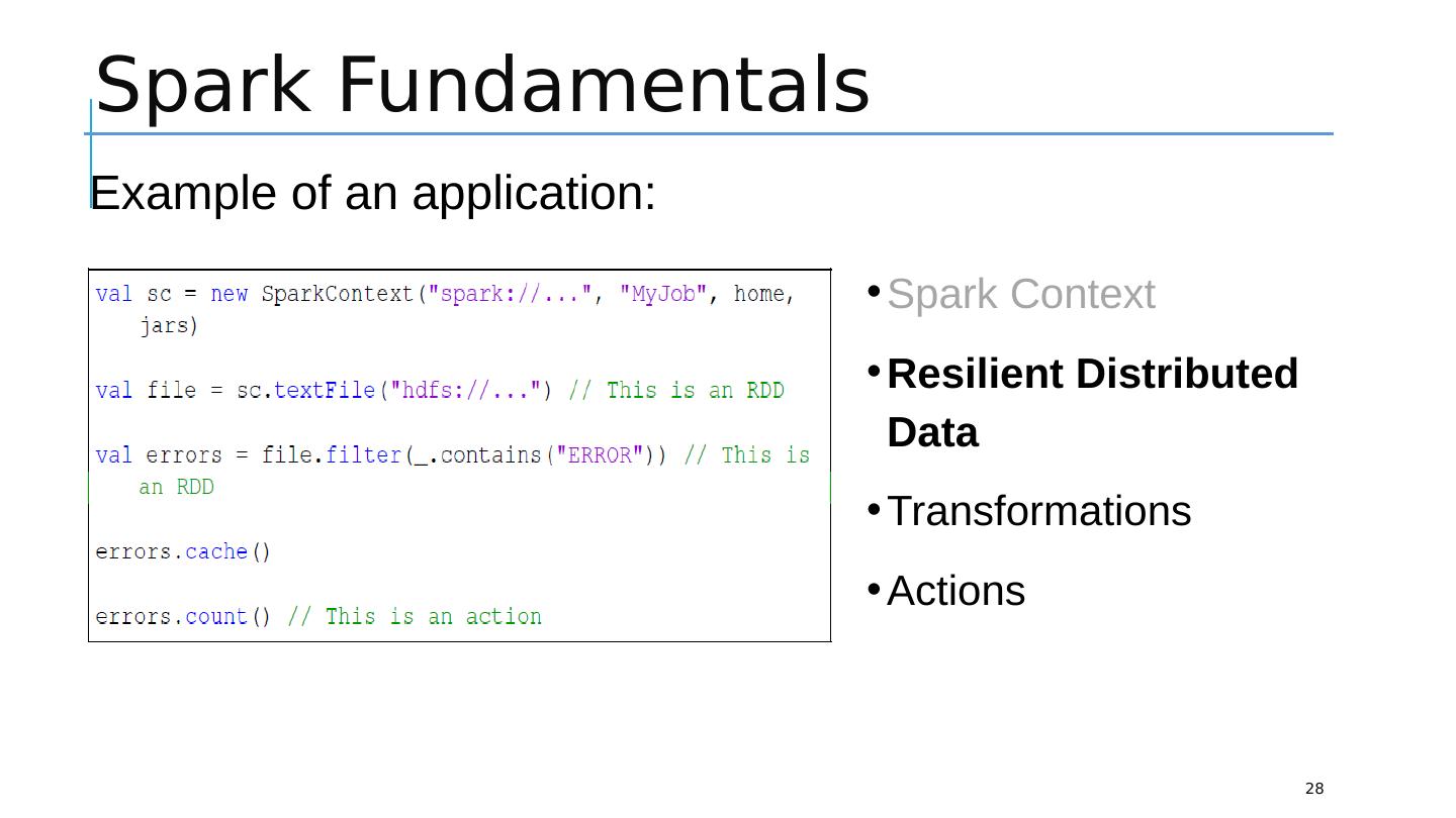 23 .Spark Fundamentals 23 Spark Context Resilient Distributed Data Transformations Actions Example of an application: