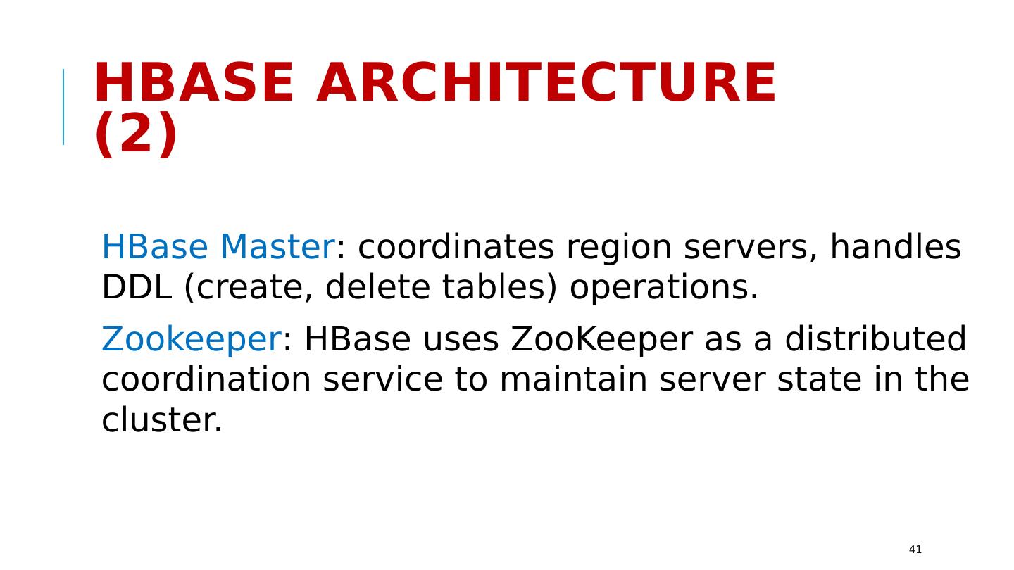 25 .Hadoop Database (HBase) A NoSQL database built on HDFS A table can have thousands of columns Supports very large amounts of data and high throughput HBase Strong Consistency Random access, low latency 25