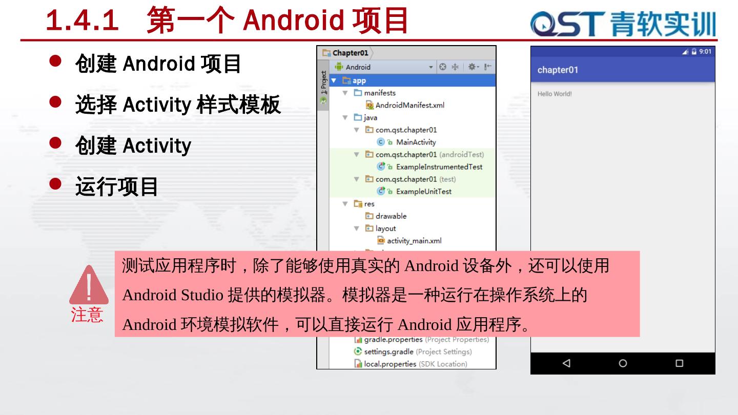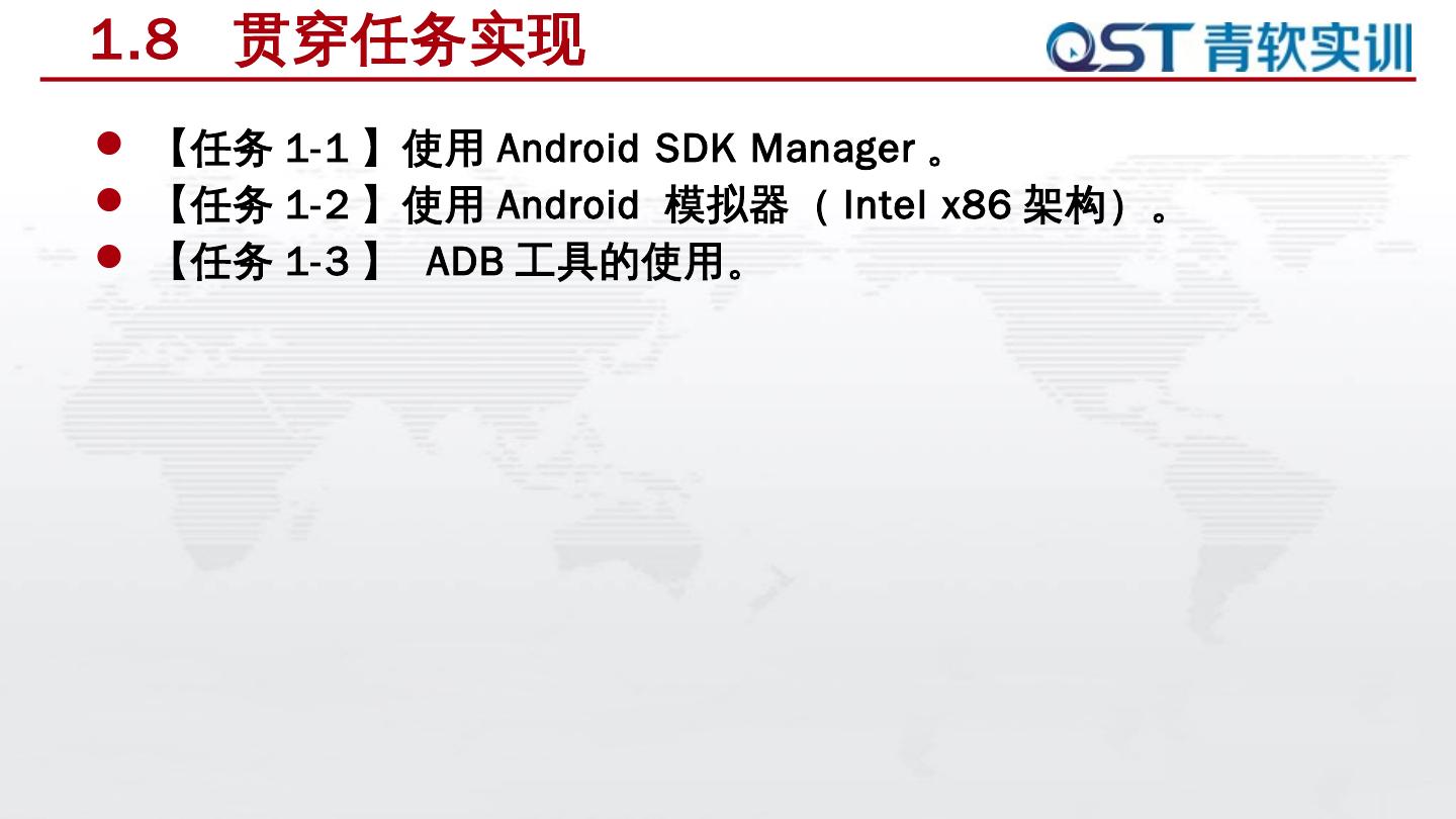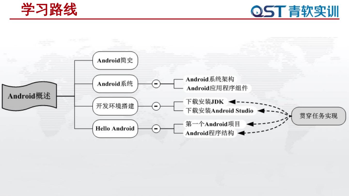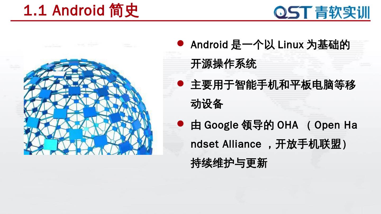 本章任务是熟悉Android开发环境及搭建过程,具体要求如下:. 任务驱动 ... Android是一个以Linux为基础的开源操作系统; 主要用于智能手机和平板电脑等移动设备 ...