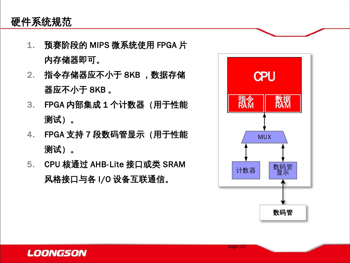 数据存储器应不小于8KB。 FPGA内部集成1个计数器(用于性能测试)。