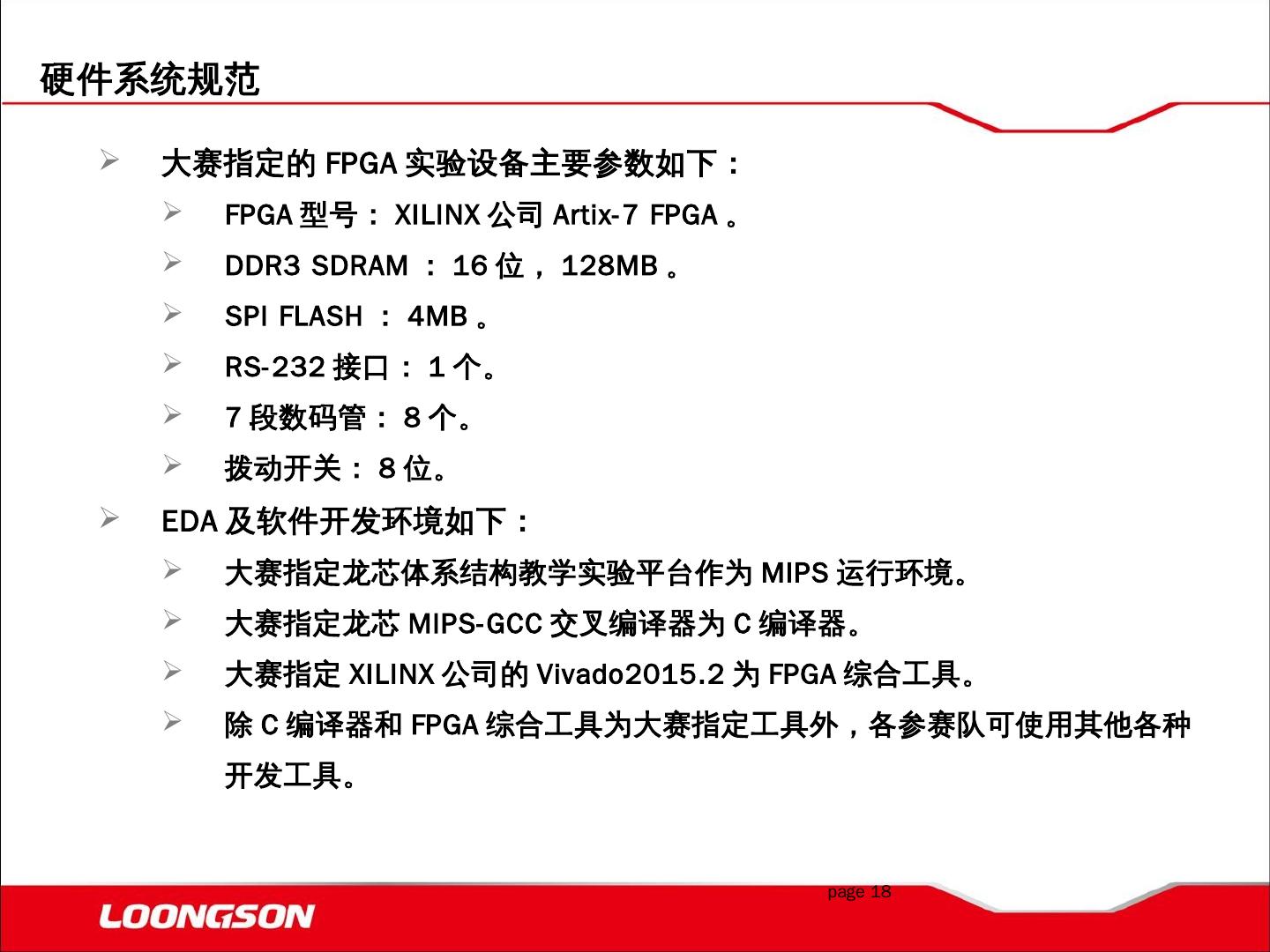 大赛指定龙芯MIPS-GCC交叉编译器为C编译器。 大赛指定XILINX公司的Vivado2015.2为FPGA综合工具。 除C编译器和FPGA综合工具为大赛指定工具外,各参赛队 ...