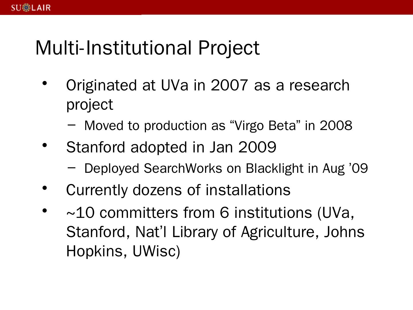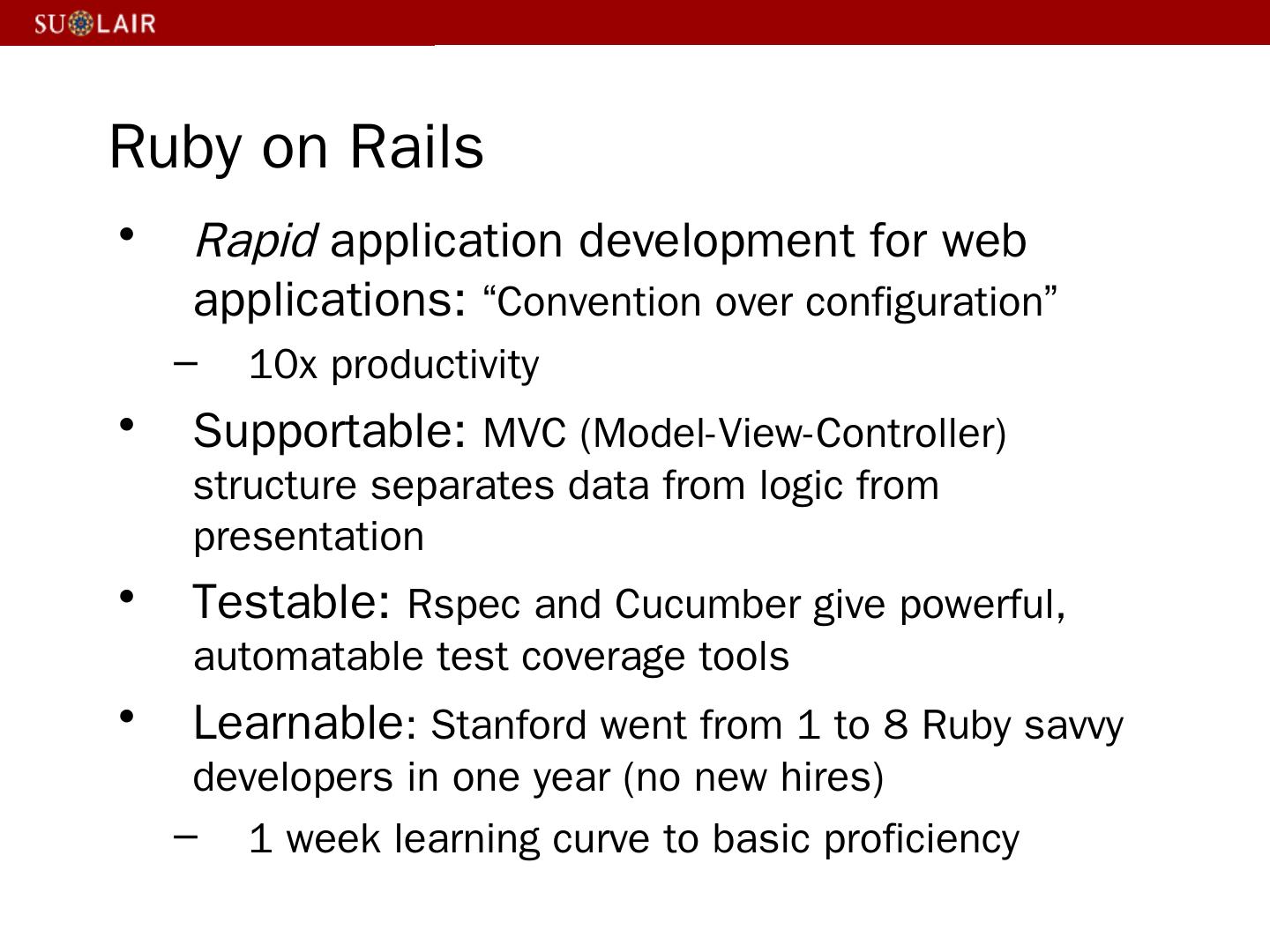 An underlying Solr index holds data from sources of interest. Indexers prepare and load data into usable form. Ruby on Rails. Rapid application development for ...
