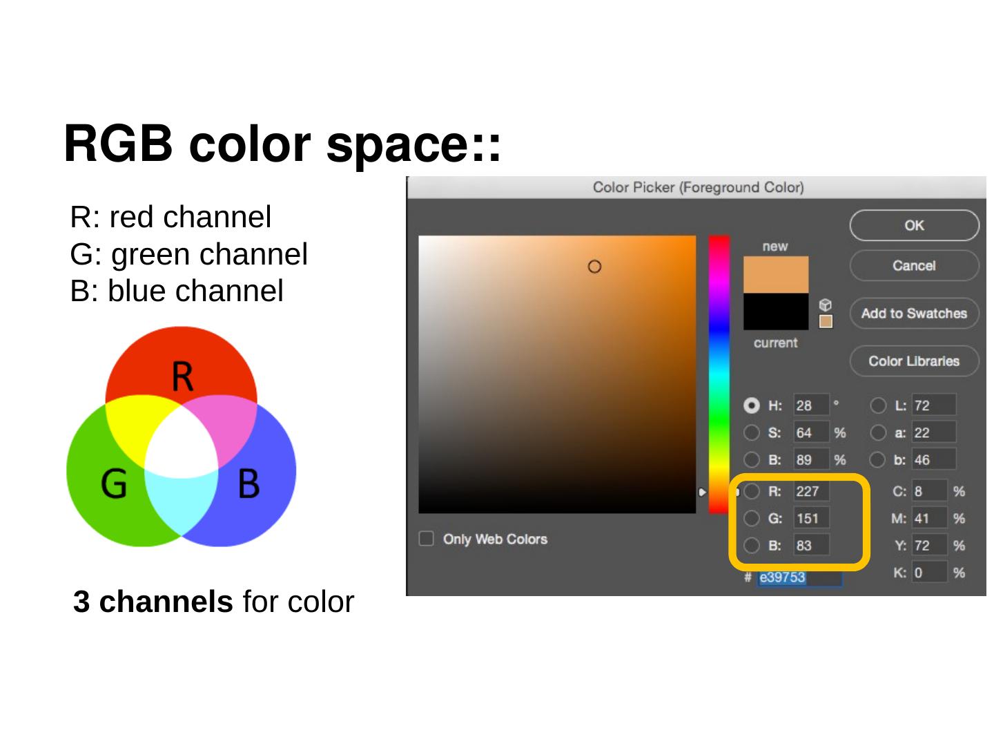 we recommend OpenCV for python. image color spaces. the two color space people typically know: for digital display. for printed content. the camera image you ...