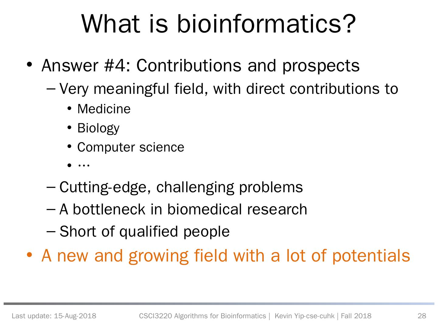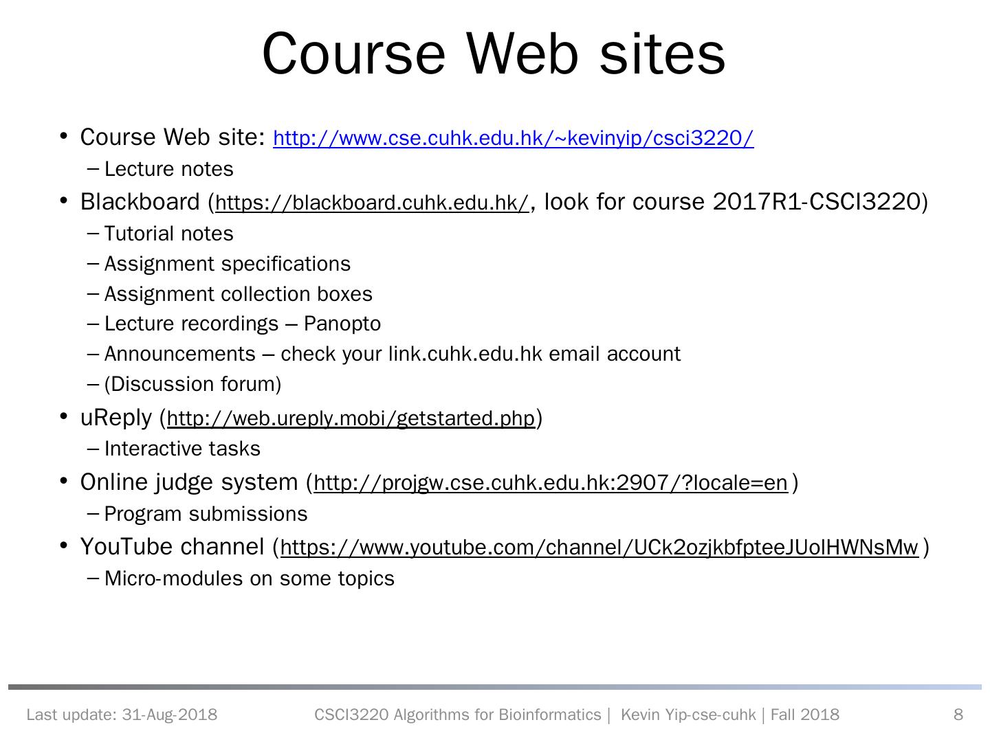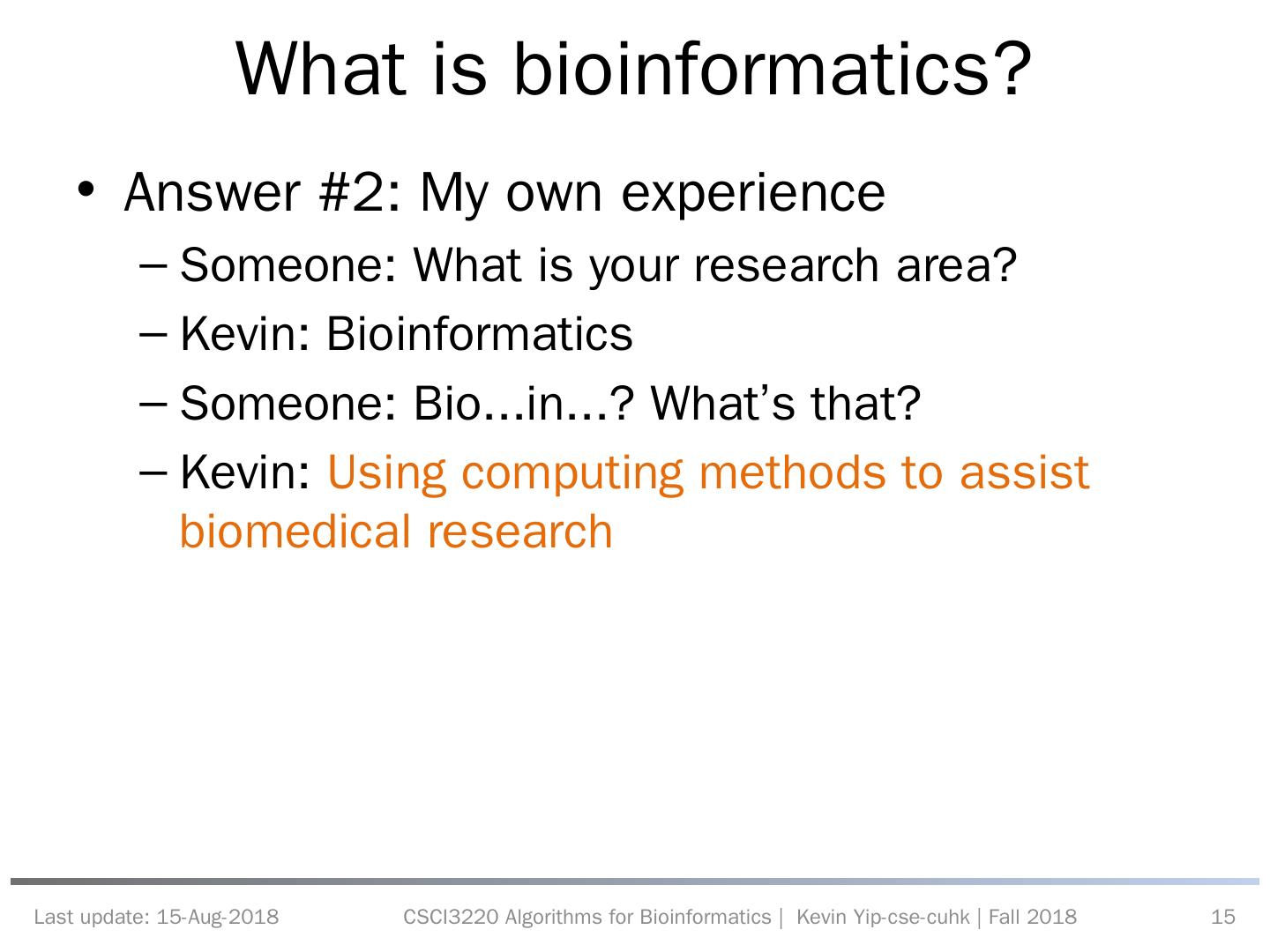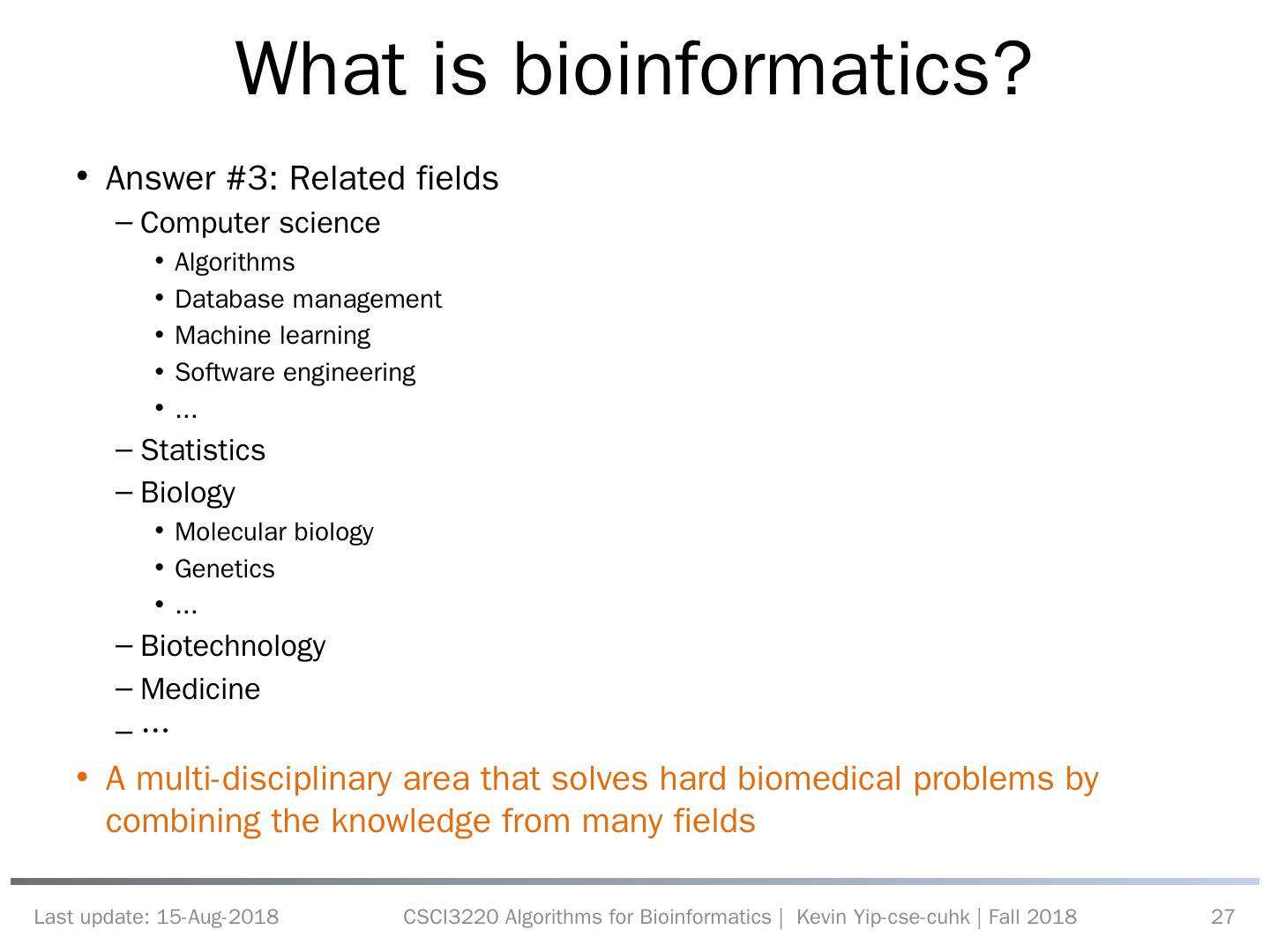 CSCI3220 Algorithms for Bioinformatics | Kevin Yip-cse-cuhk | Fall 2018 .... Algorithms; Database management; Machine learning; Software engineering .