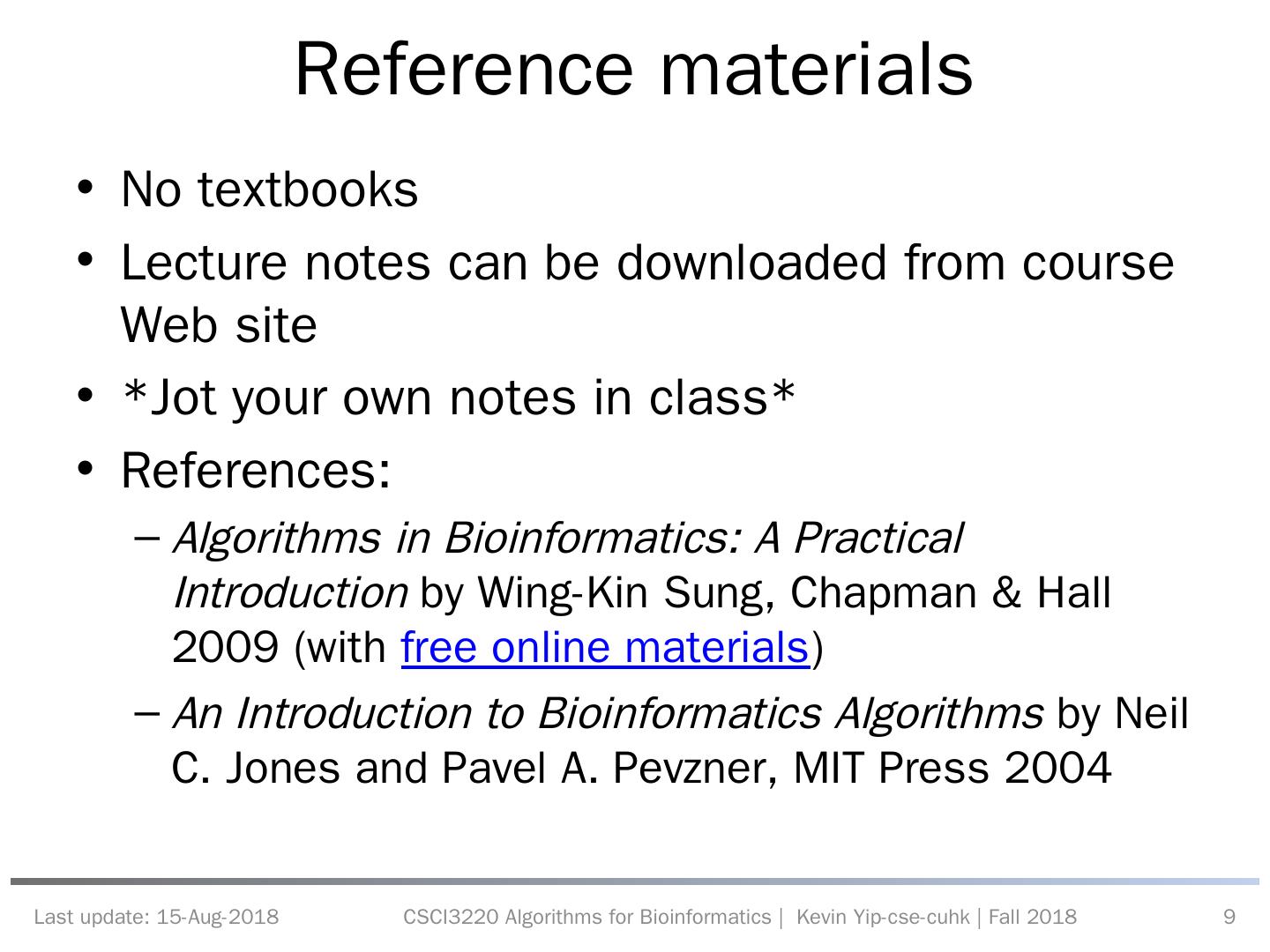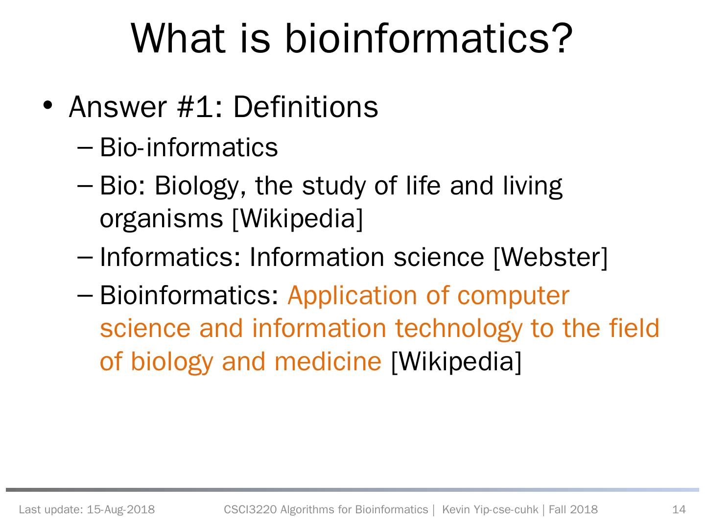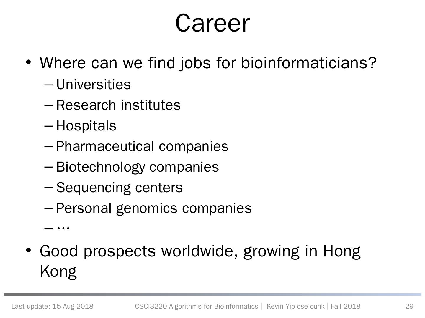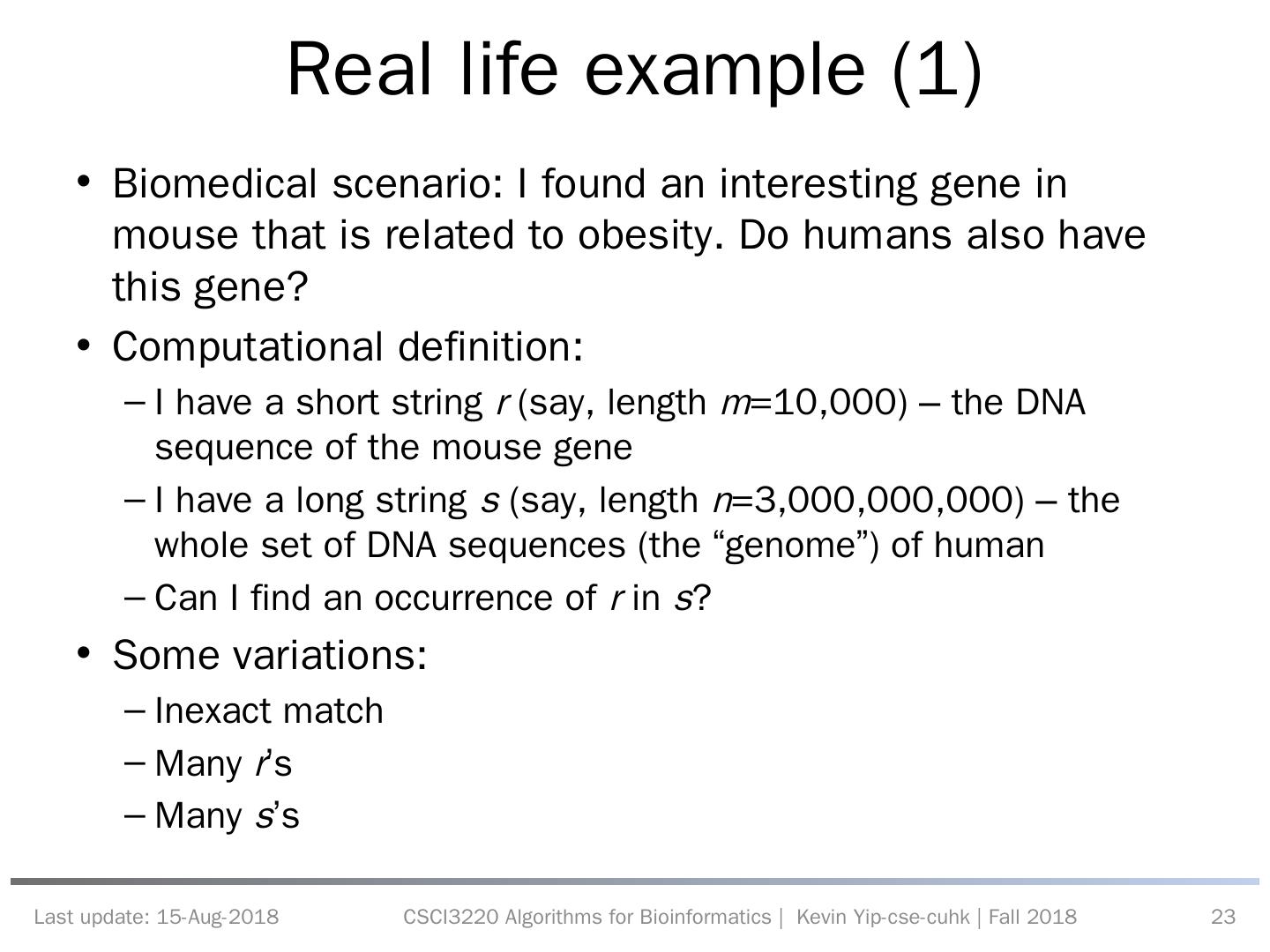 CSCI3220 Algorithms for Bioinformatics | Kevin Yip-cse-cuhk | Fall 2018 .... Algorithms; Database management; Machine learning; Software engineering .