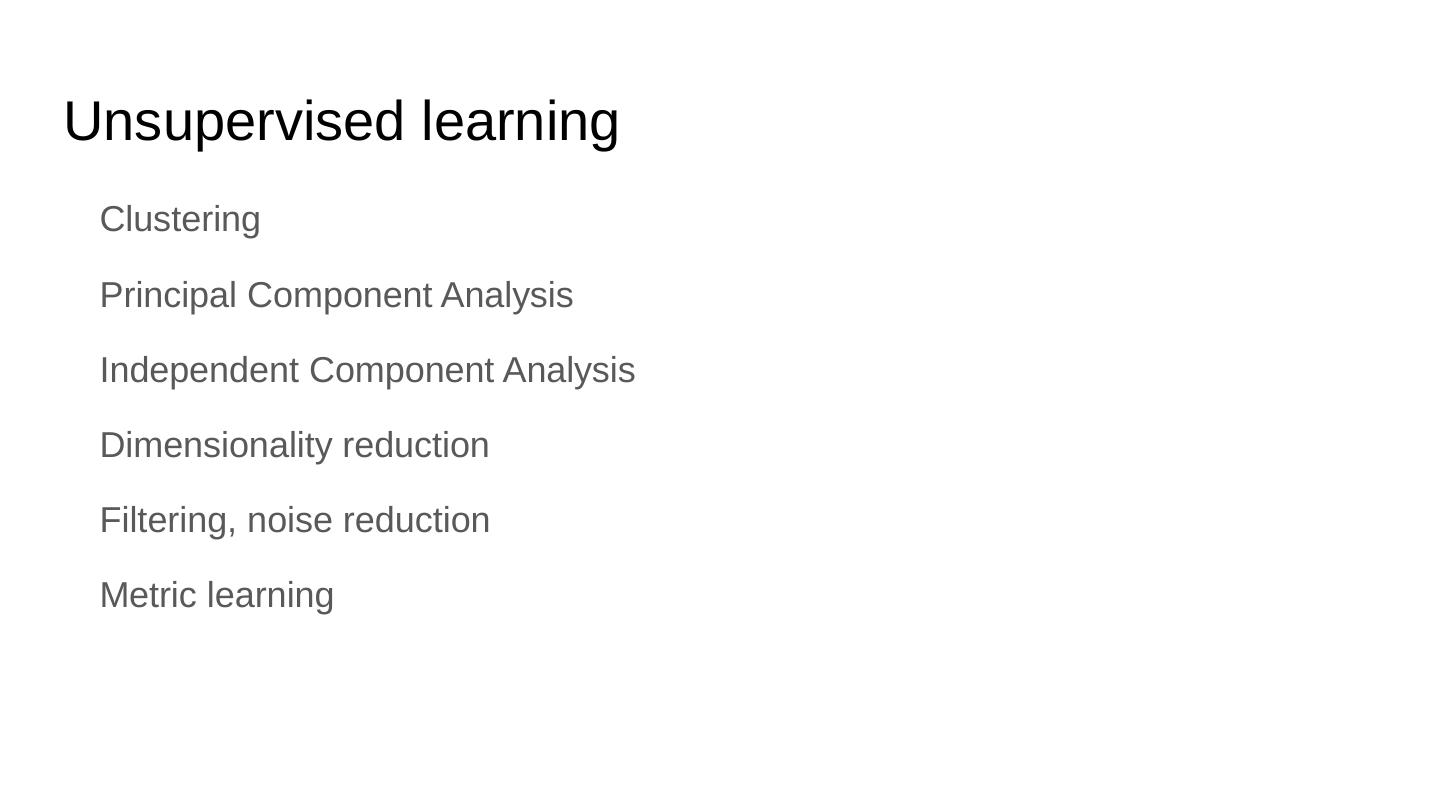 Principal Component Analysis. Independent Component Analysis. Dimensionality reduction. Filtering, noise reduction. Metric learning. Unsupervised learning.