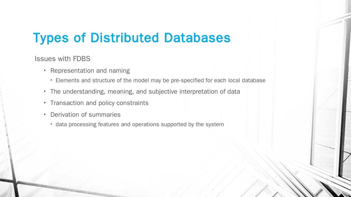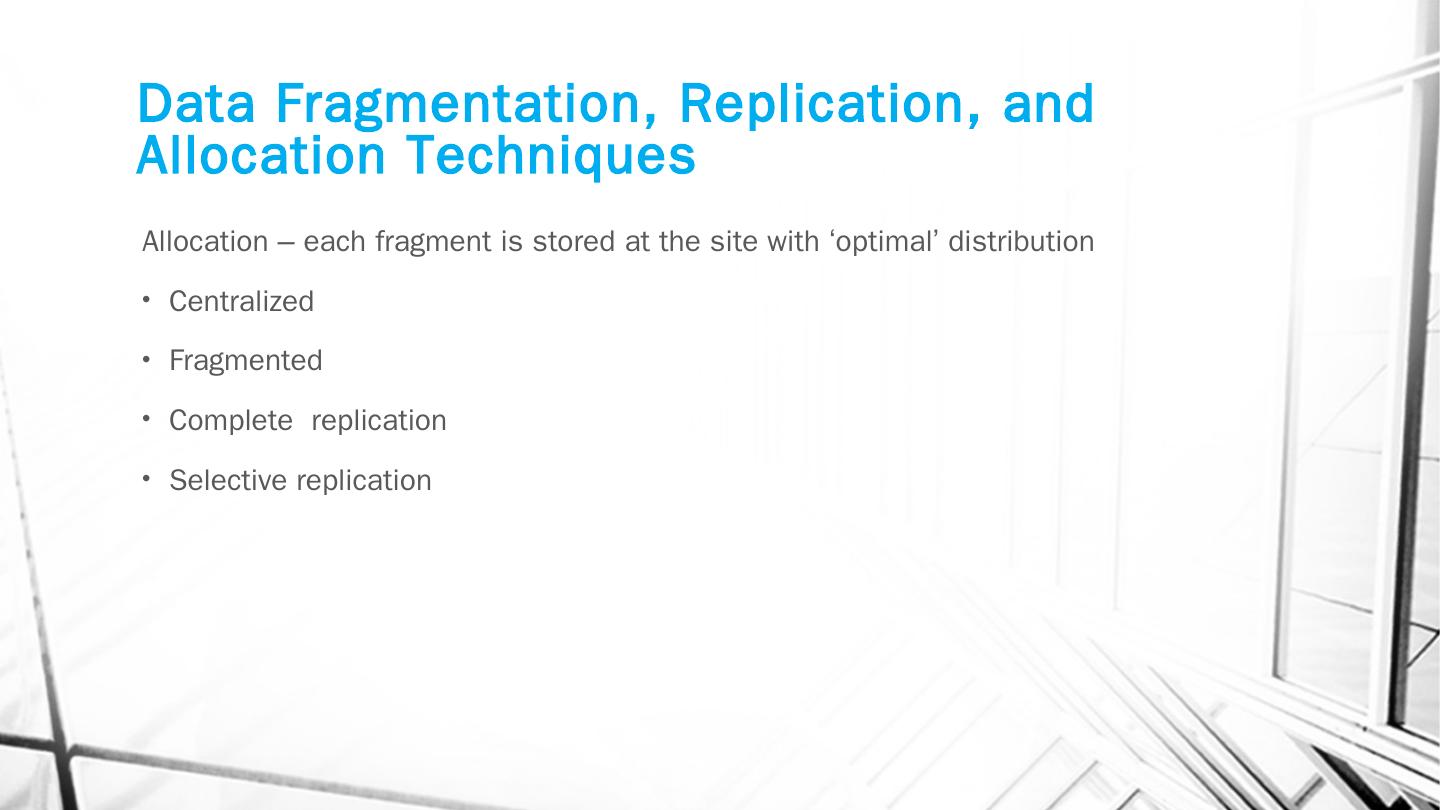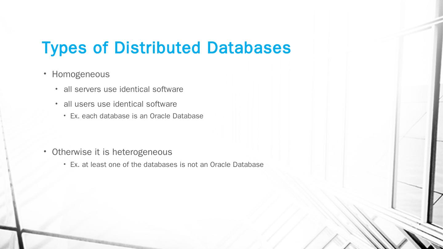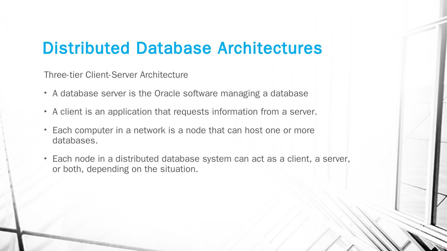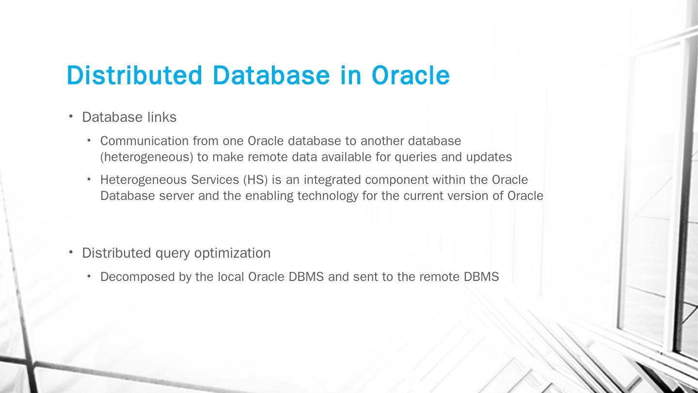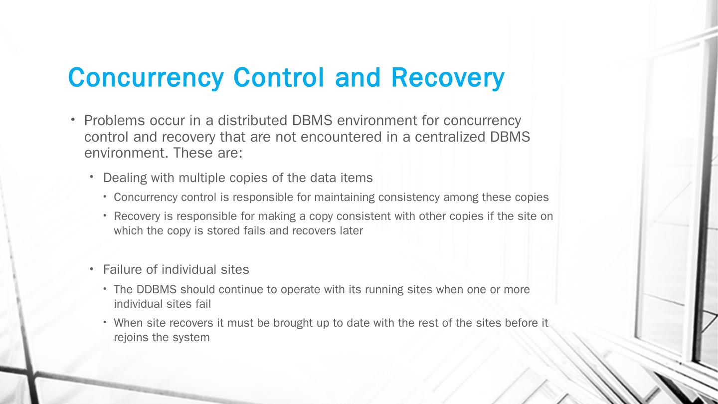 Distributed database management system (DDBMS) – A software system that manages a distributed database while making the distribution transparent to the ...