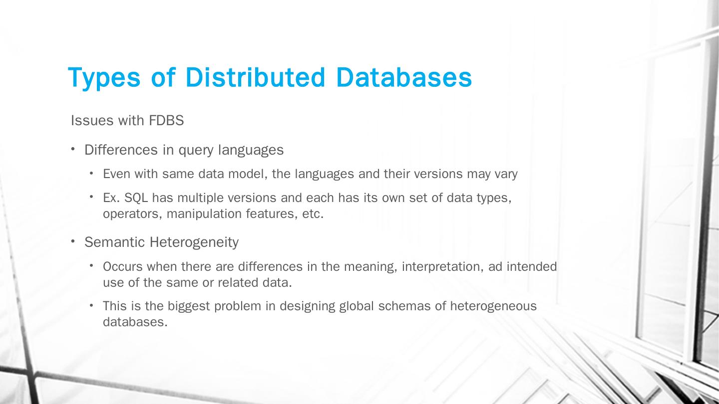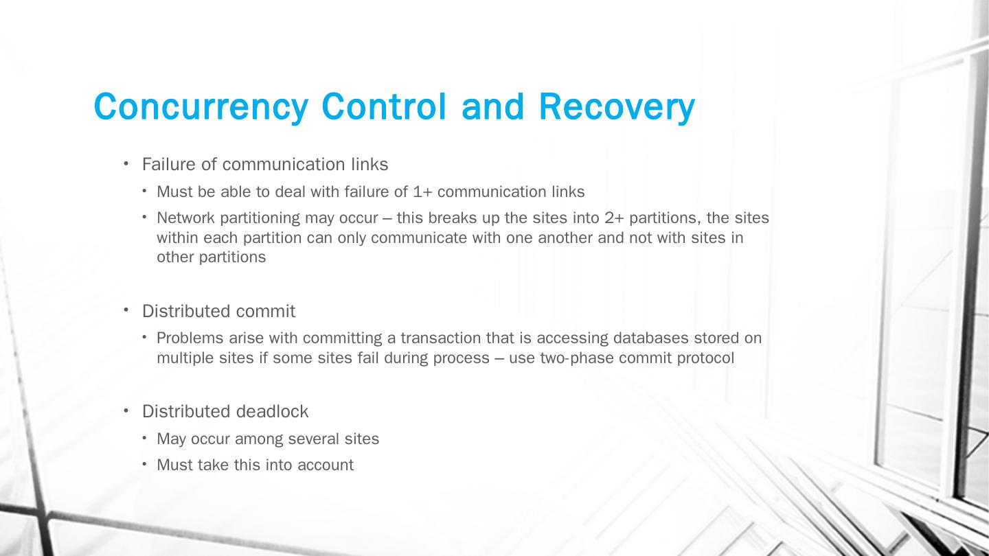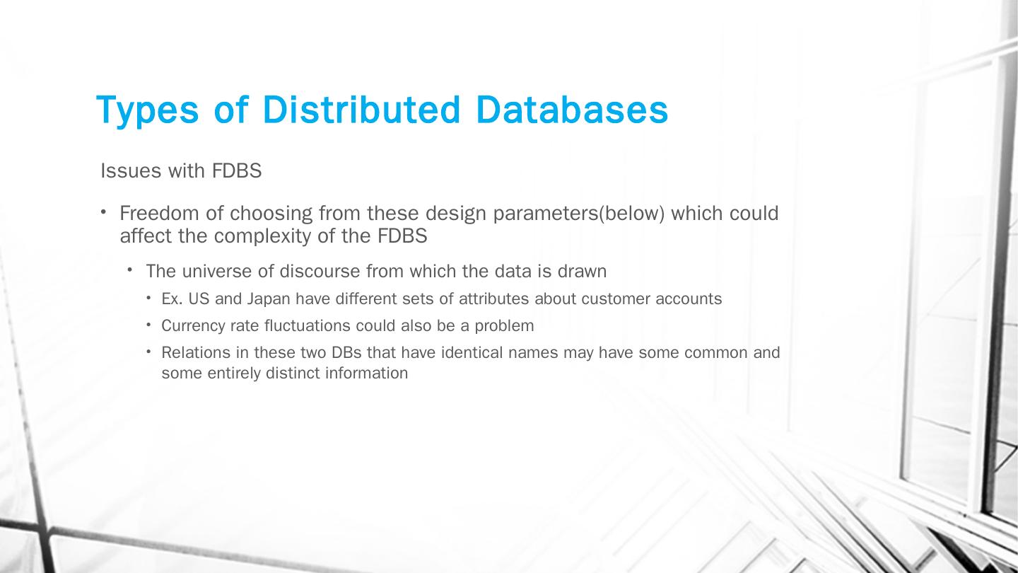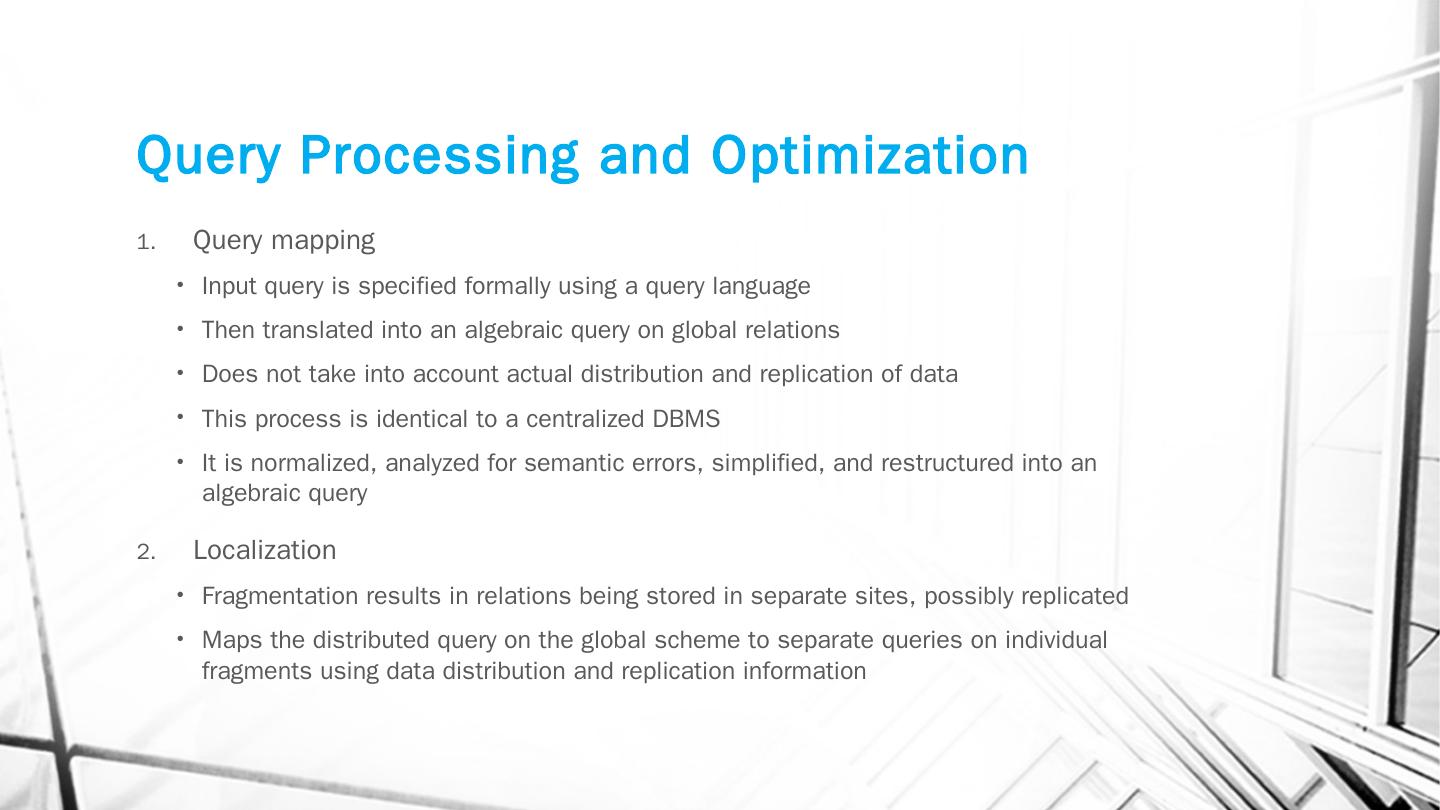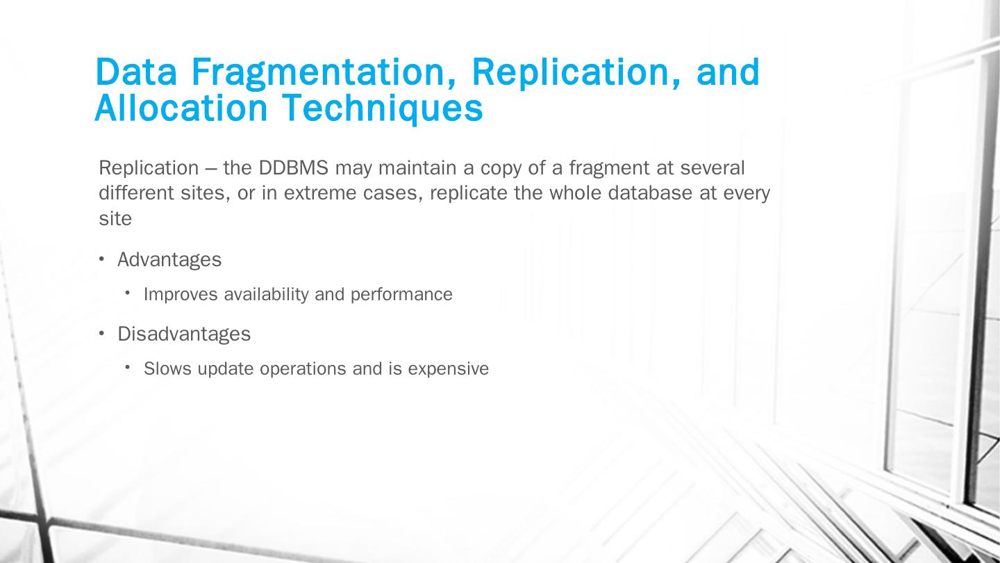 Distributed database management system (DDBMS) – A software system that manages a distributed database while making the distribution transparent to the ...