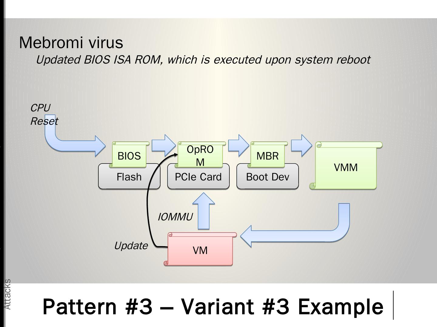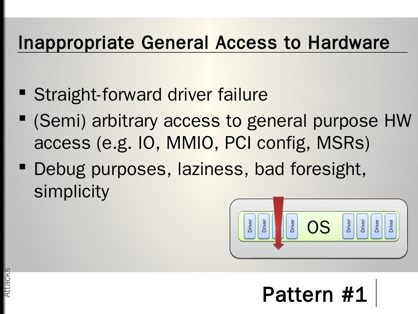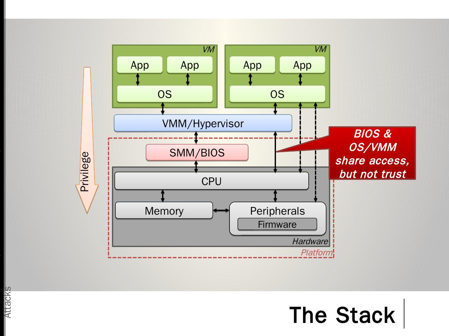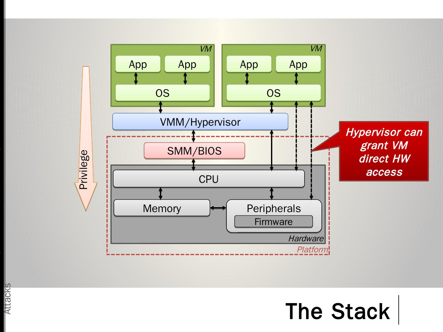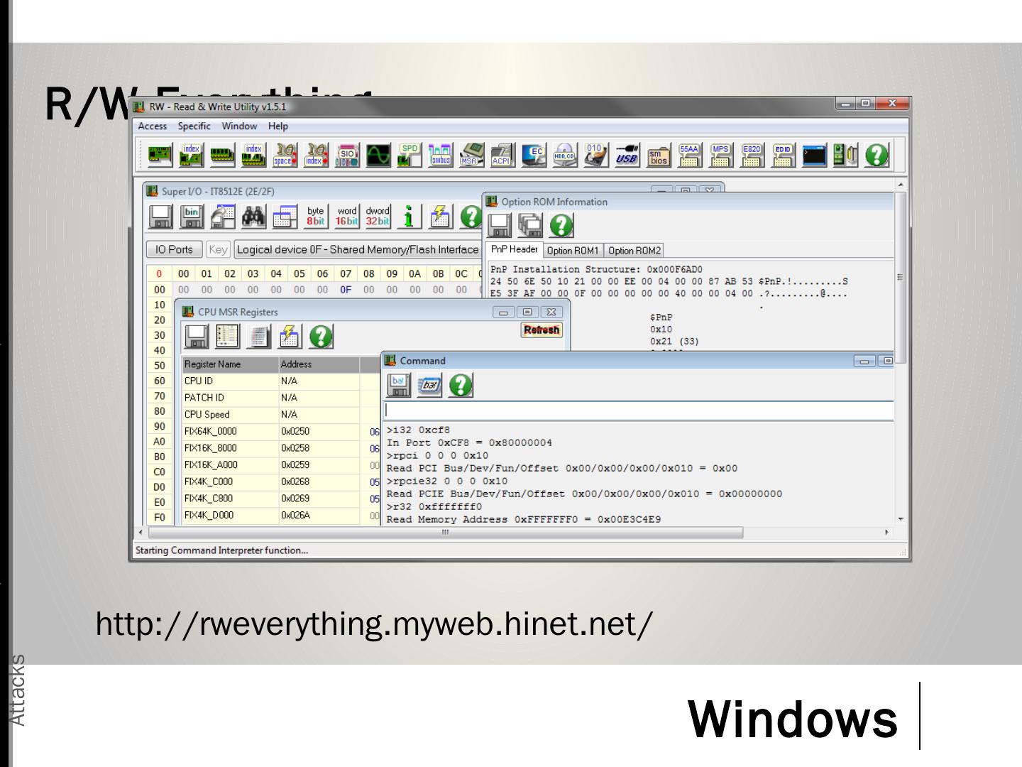 Memory? Jeff Forristal / CanSecWest 2012 / Hardware Involved Software Attacks ... Linux kernel on x64/em64t allows writing to IO ports via outs instruction.