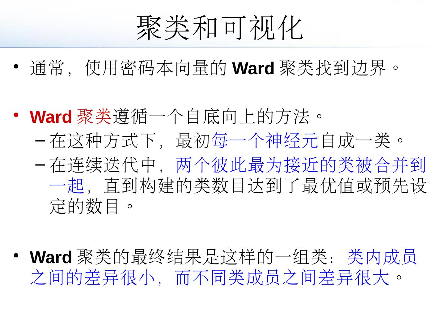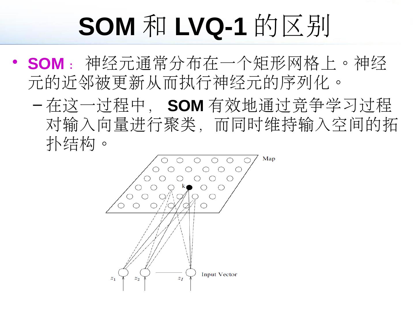 一个常用的非监督聚类算法是由Kohonen设计的学习向量量化器(LVQ)。 ... 聚类算法:将n个观测结果的集合划分为m个组,使得较之与其他组成员,同组成员之间更为 ...