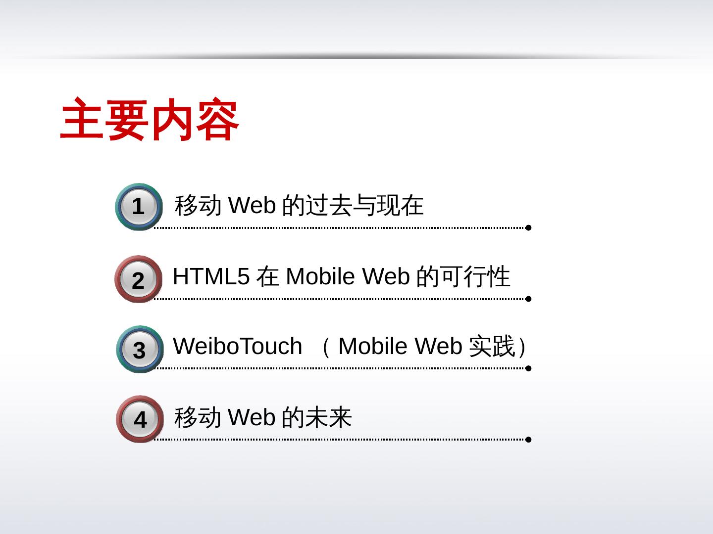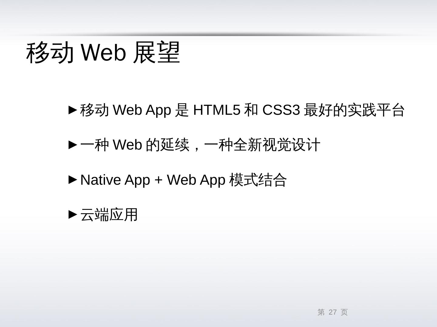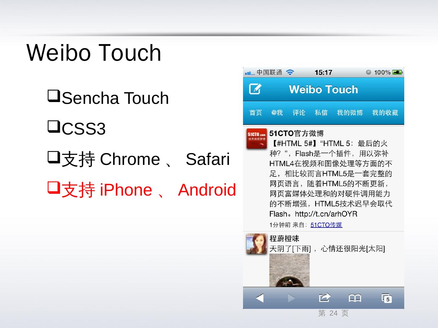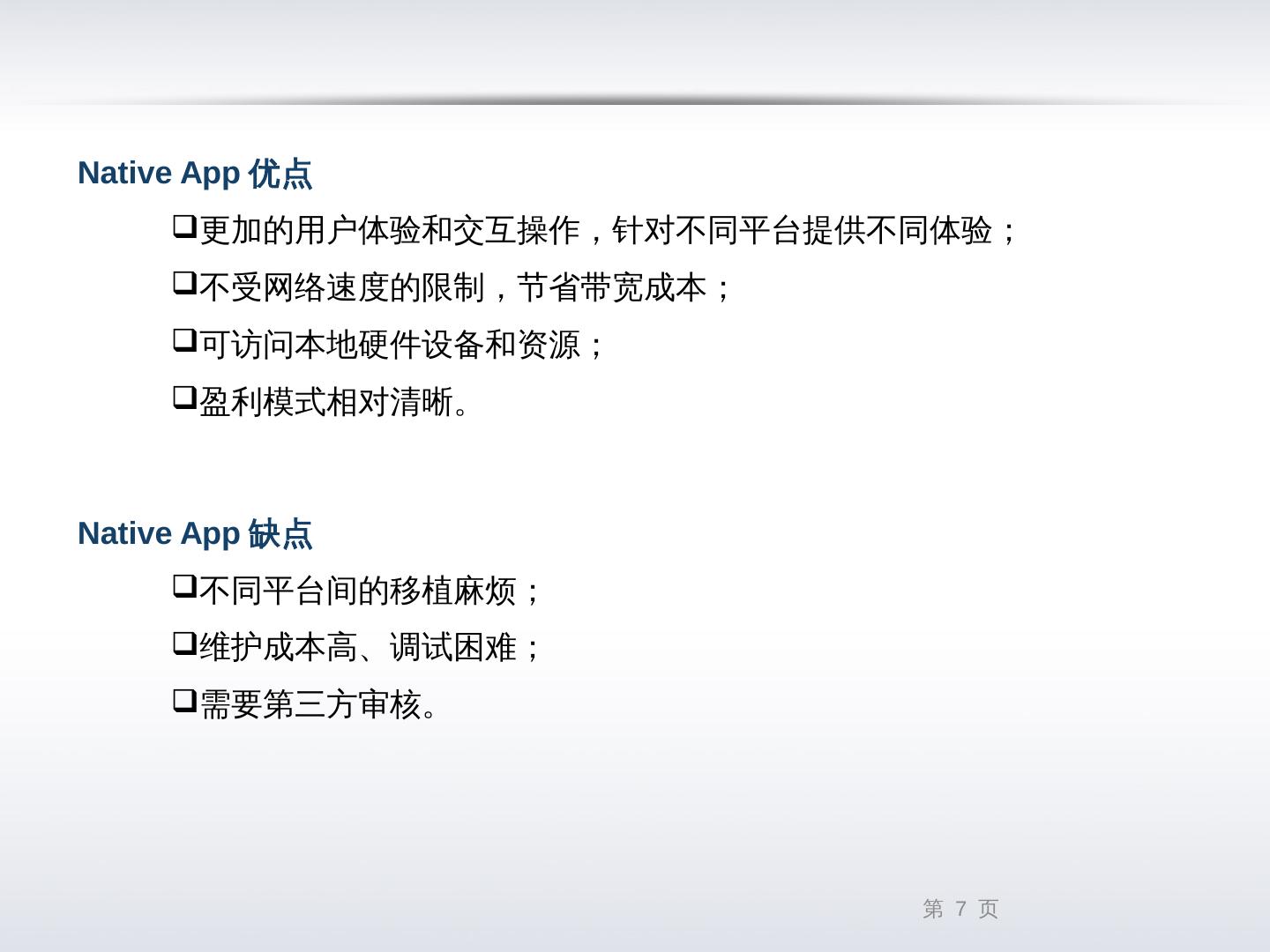 WAP浏览器. UC浏览器. Opera Mini. 移动Web时代. 第 4 页. 平台. Android. iOS ... 不同平台间的移植麻烦;; 维护成本高、调试困难;; 需要第三方审核。 第 7 页.