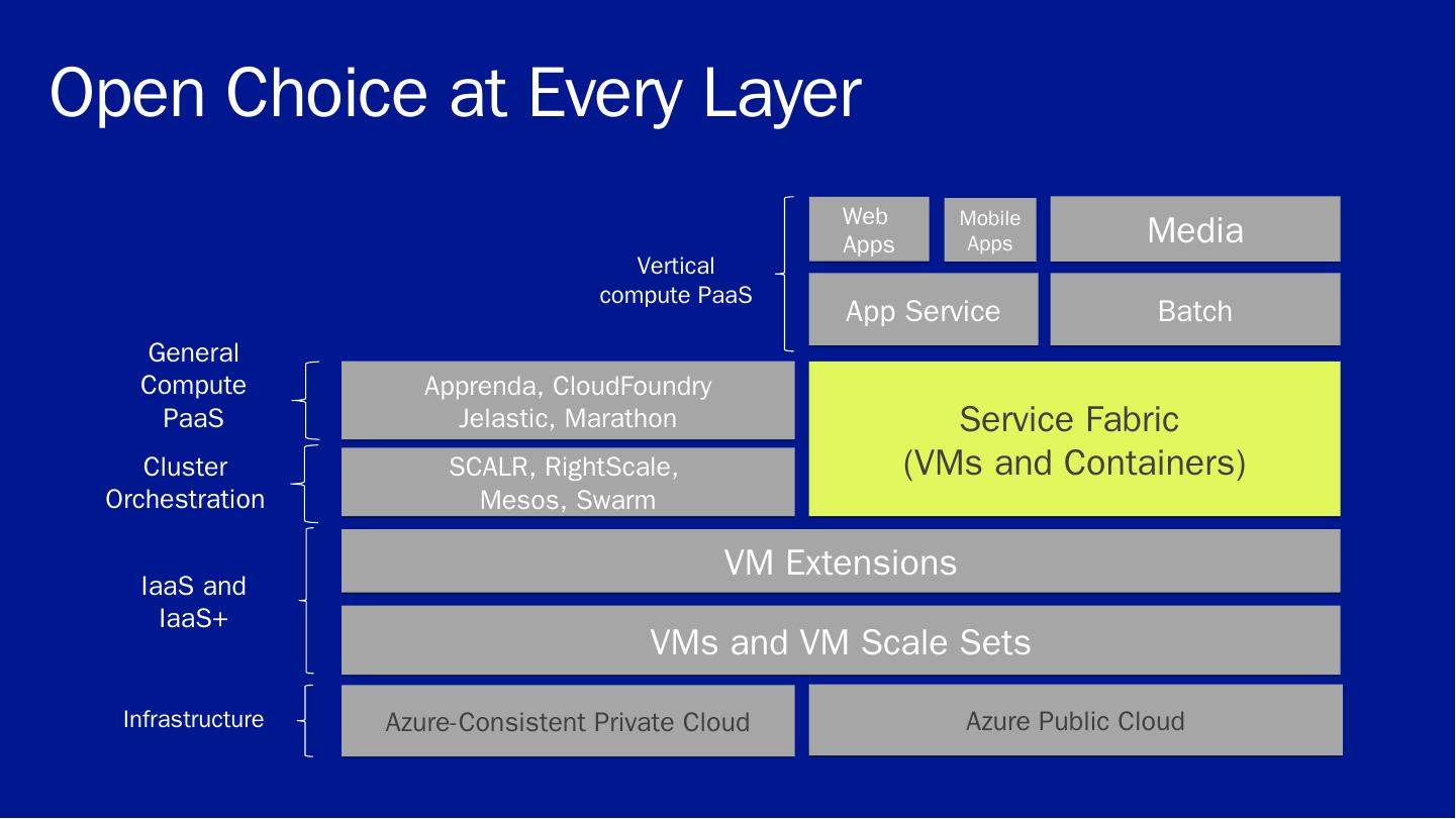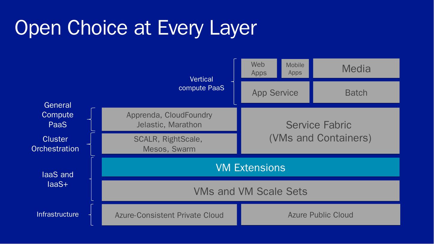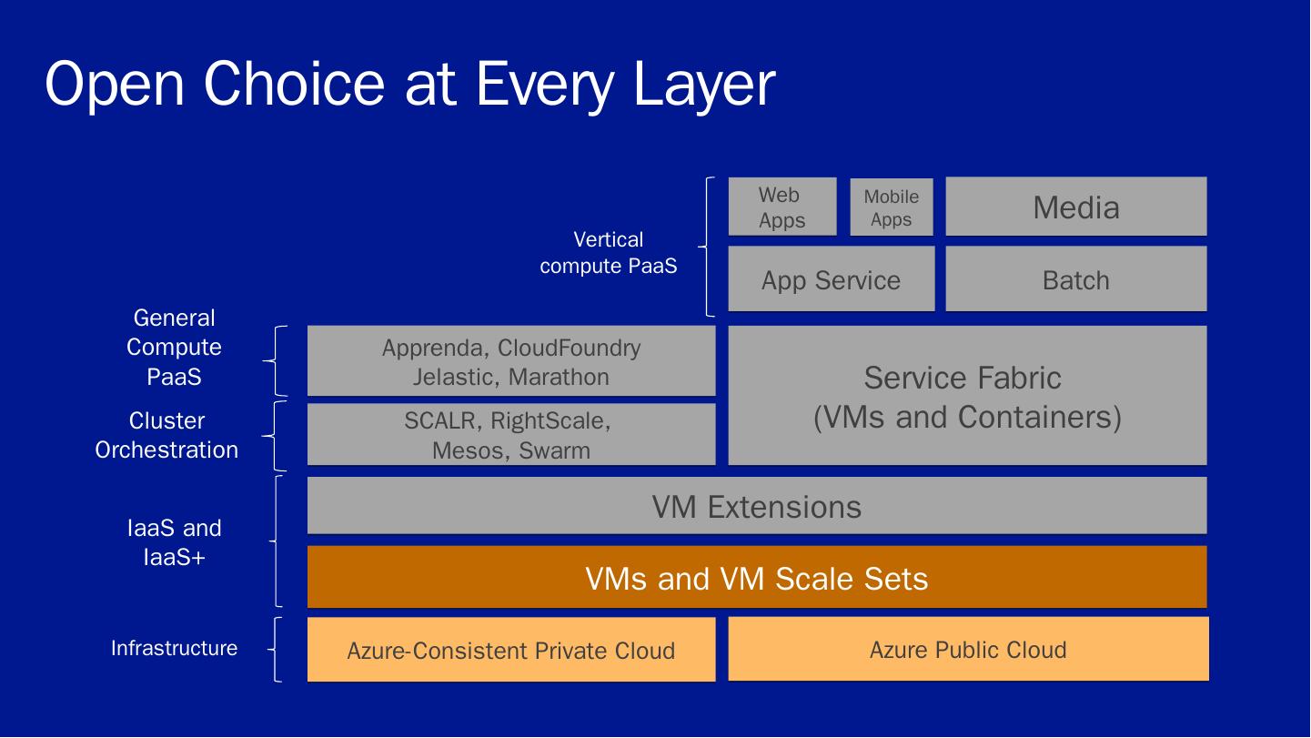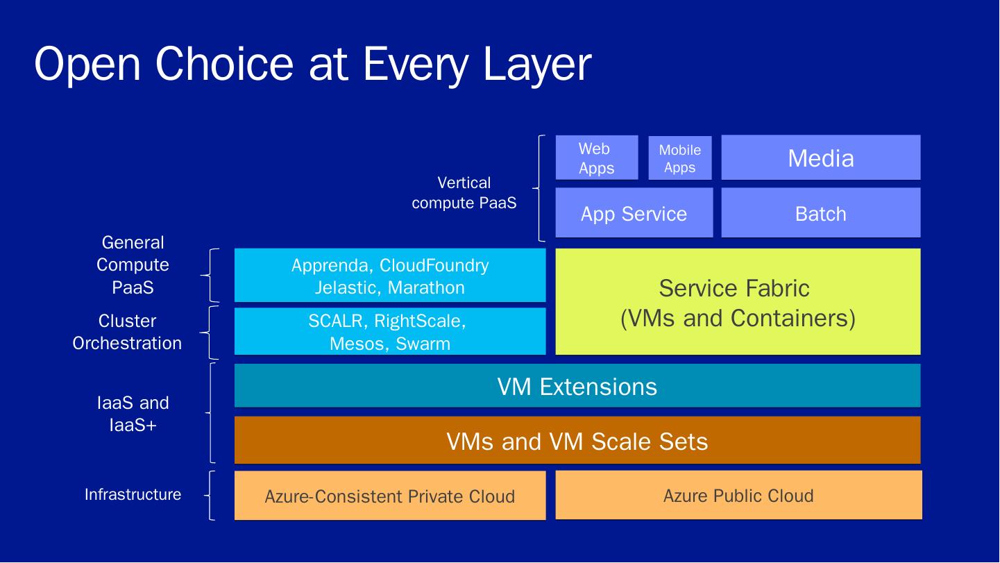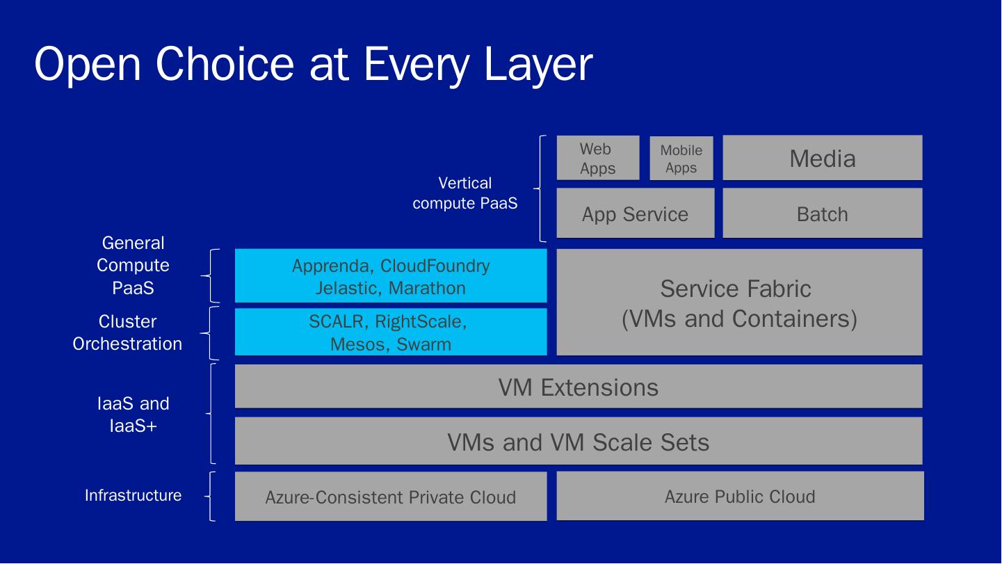 Apprenda, CloudFoundry. Jelastic, Marathon. Infrastructure. IaaS and IaaS+. General Compute PaaS. Vertical compute PaaS. Open Choice at Every Layer.