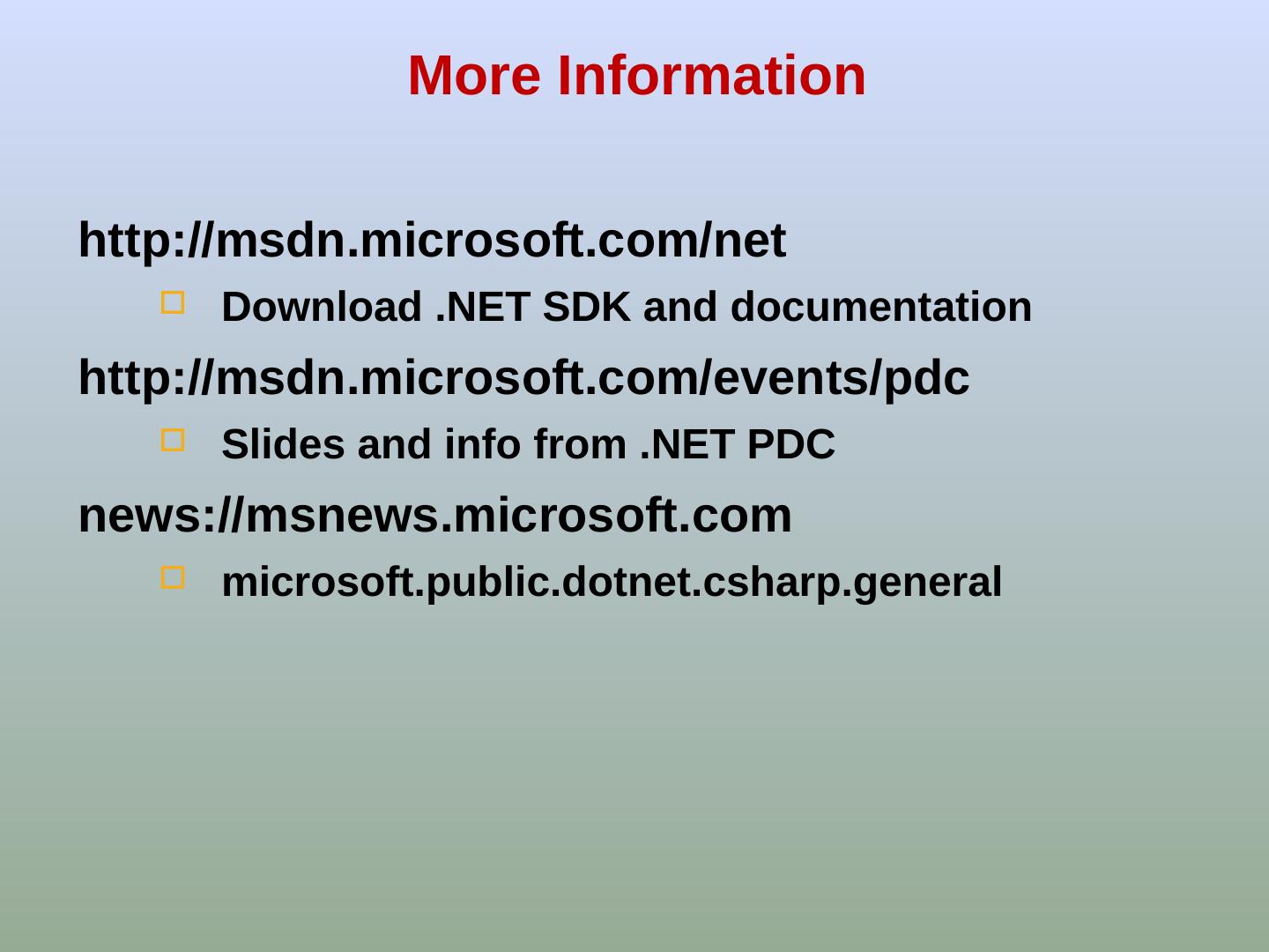 The essence of C# and .Net adopted from. Anders Hejlsberg (http://en.wikipedia.org/wiki/Anders_Hejlsberg) Distinguished Engineer Developer Division